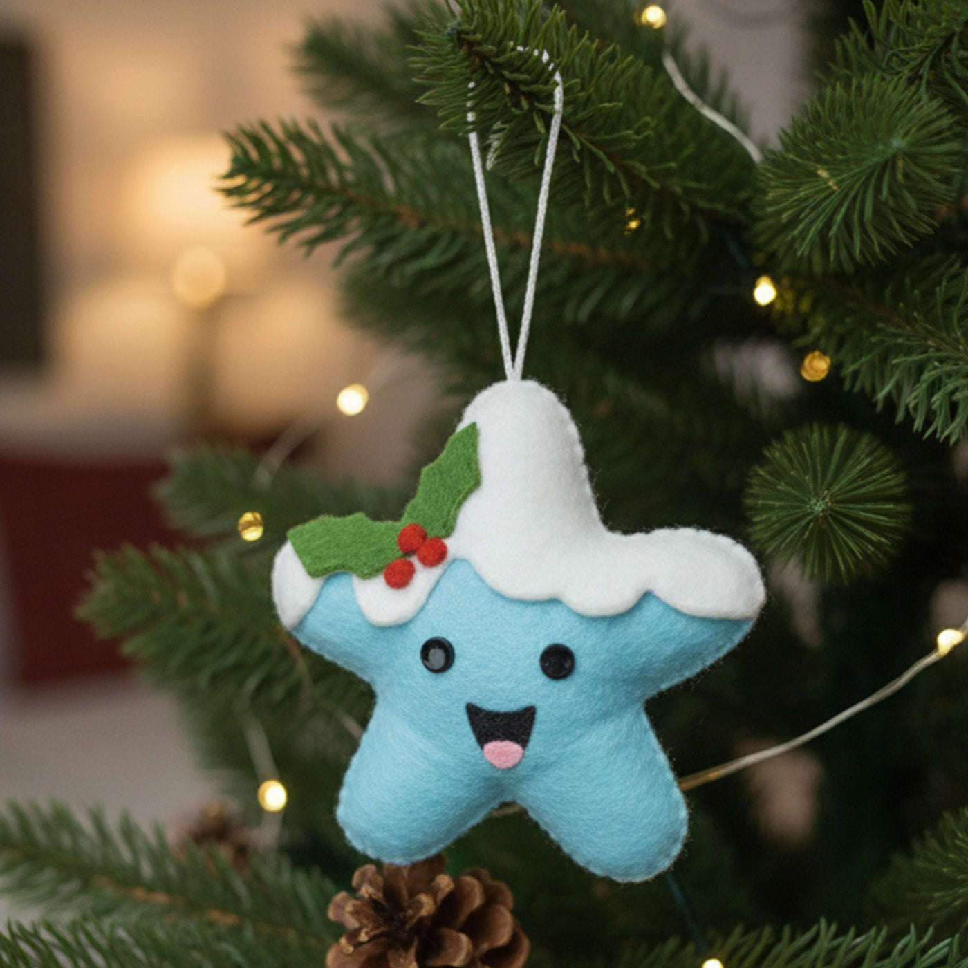 - Add a cheerful touch to your holiday décor with these felt star smiley hangings.