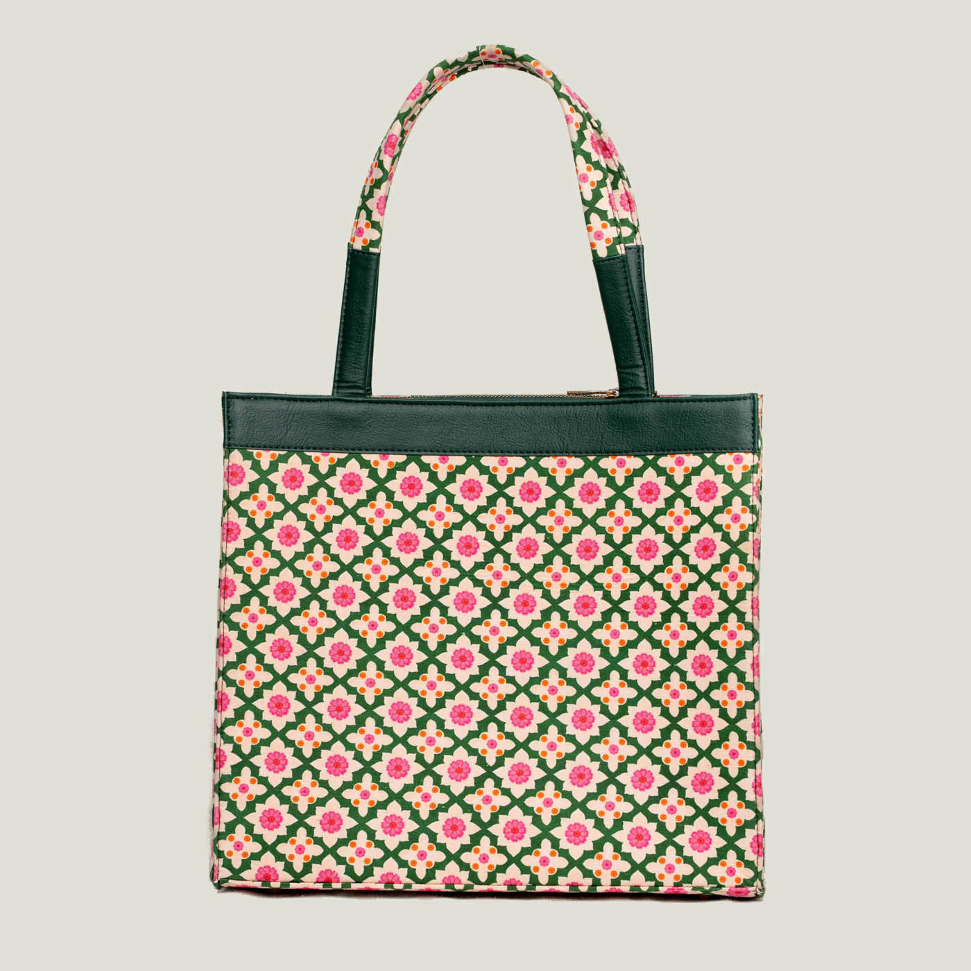 • Finished with comfortable shoulder-length handles and a secure zip-top closure for reliable, all-day carry.
