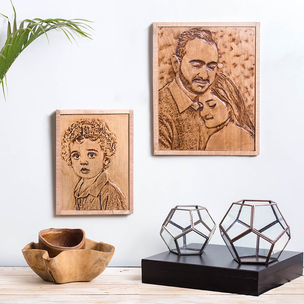- Due to the nature of wood, expect slight variations in colour and wood grain. This characteristic gives each portrait a unique look.