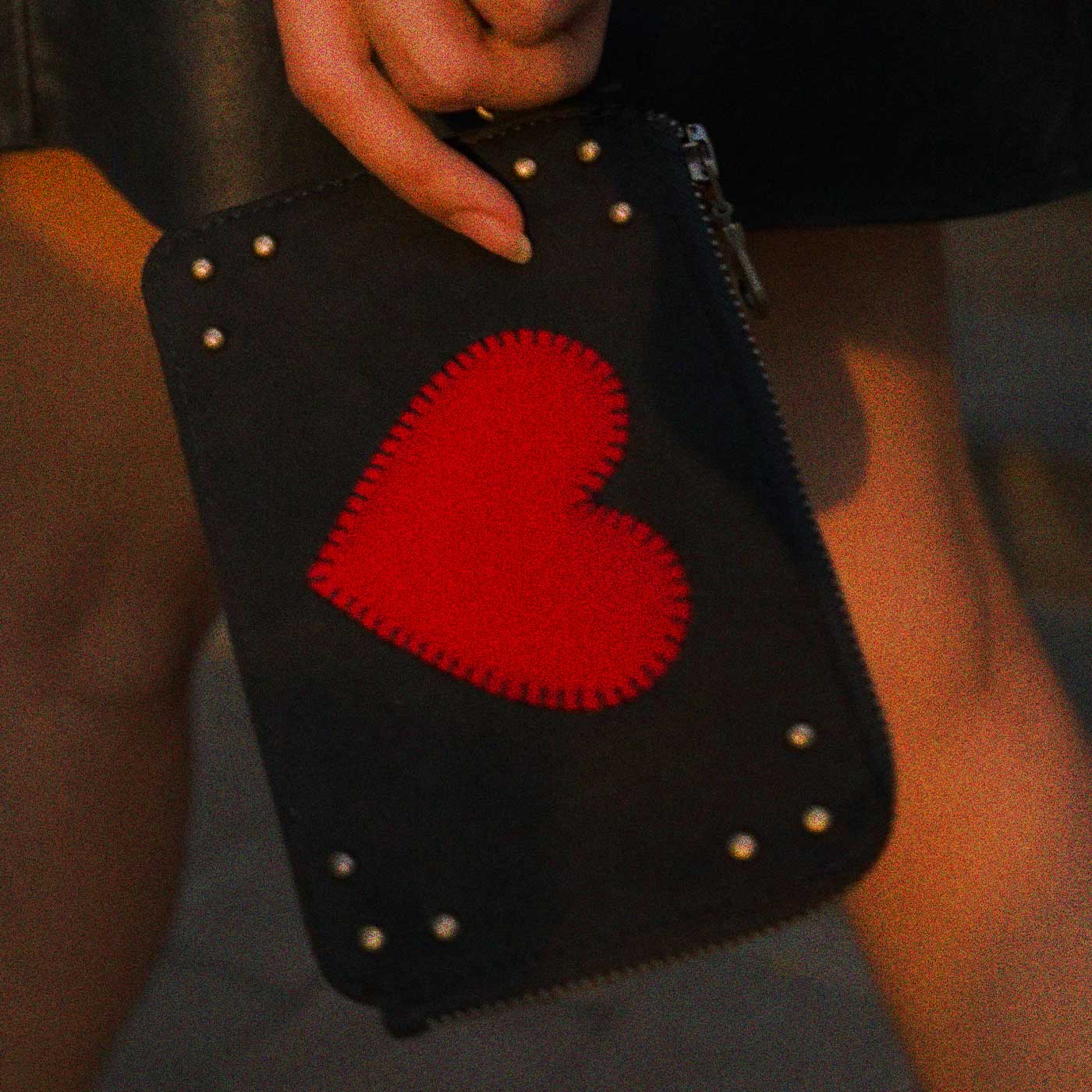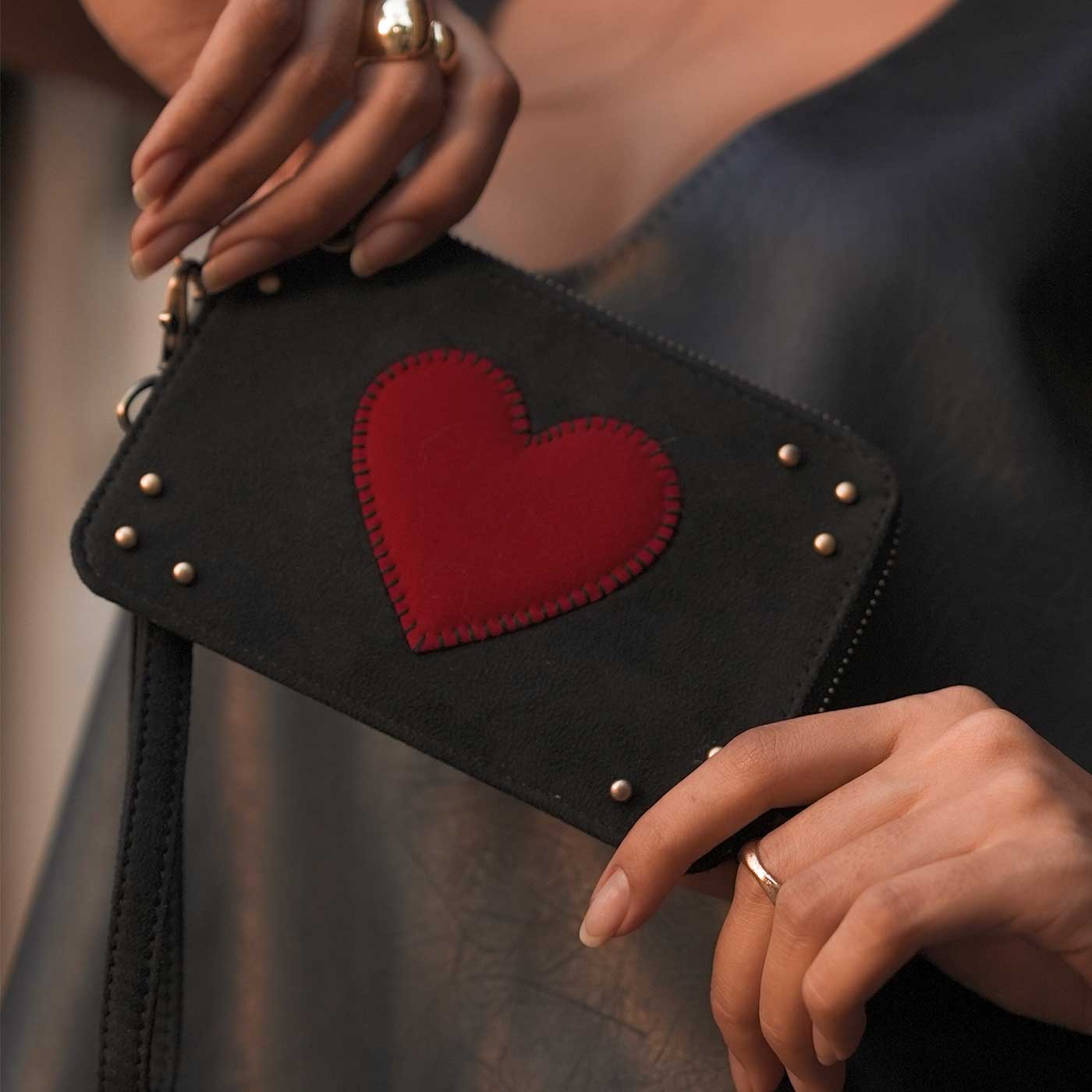 Black Big Little Heart Wristlet