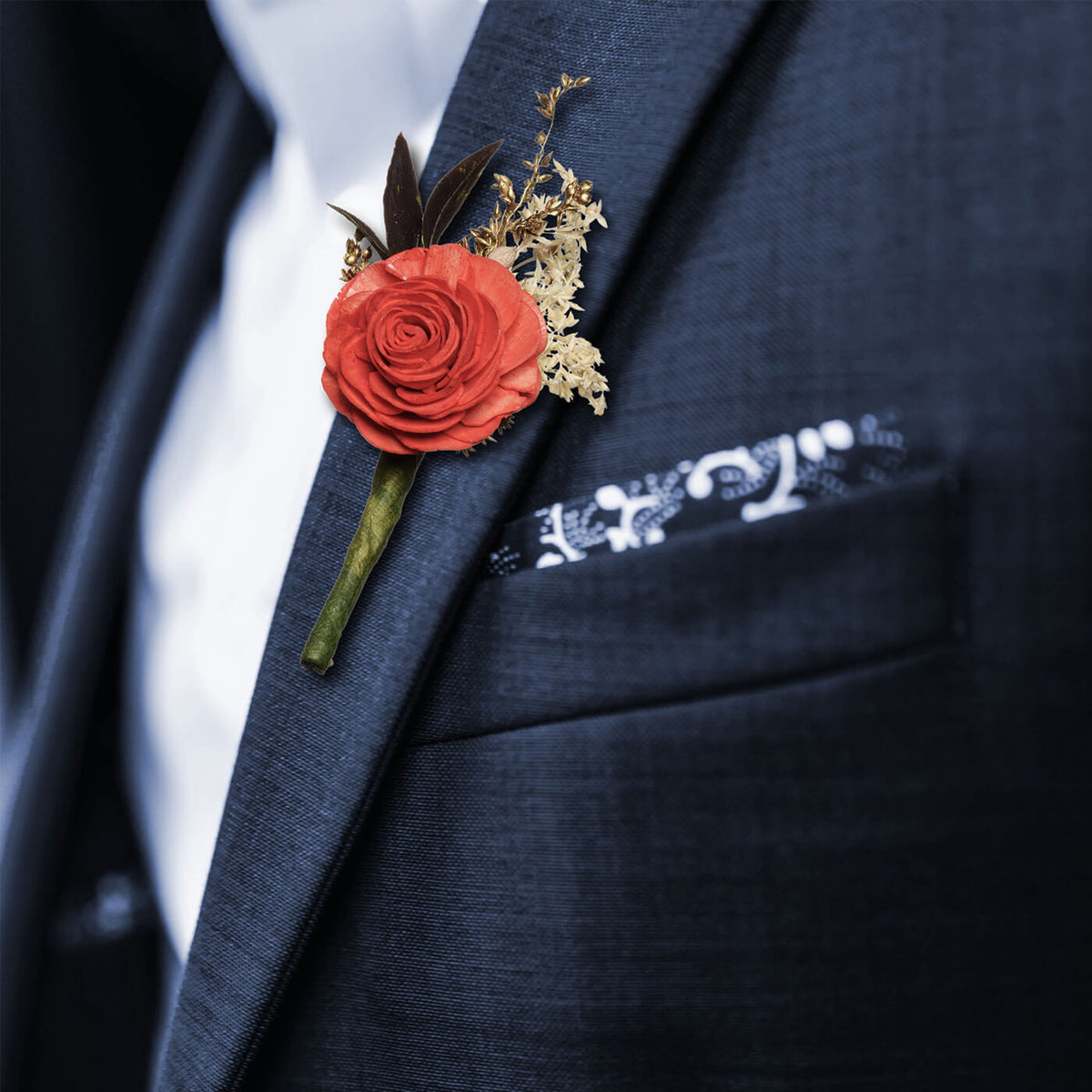 - Usher in the festive season with these eco-friendly sola wood flower boutonnieres.