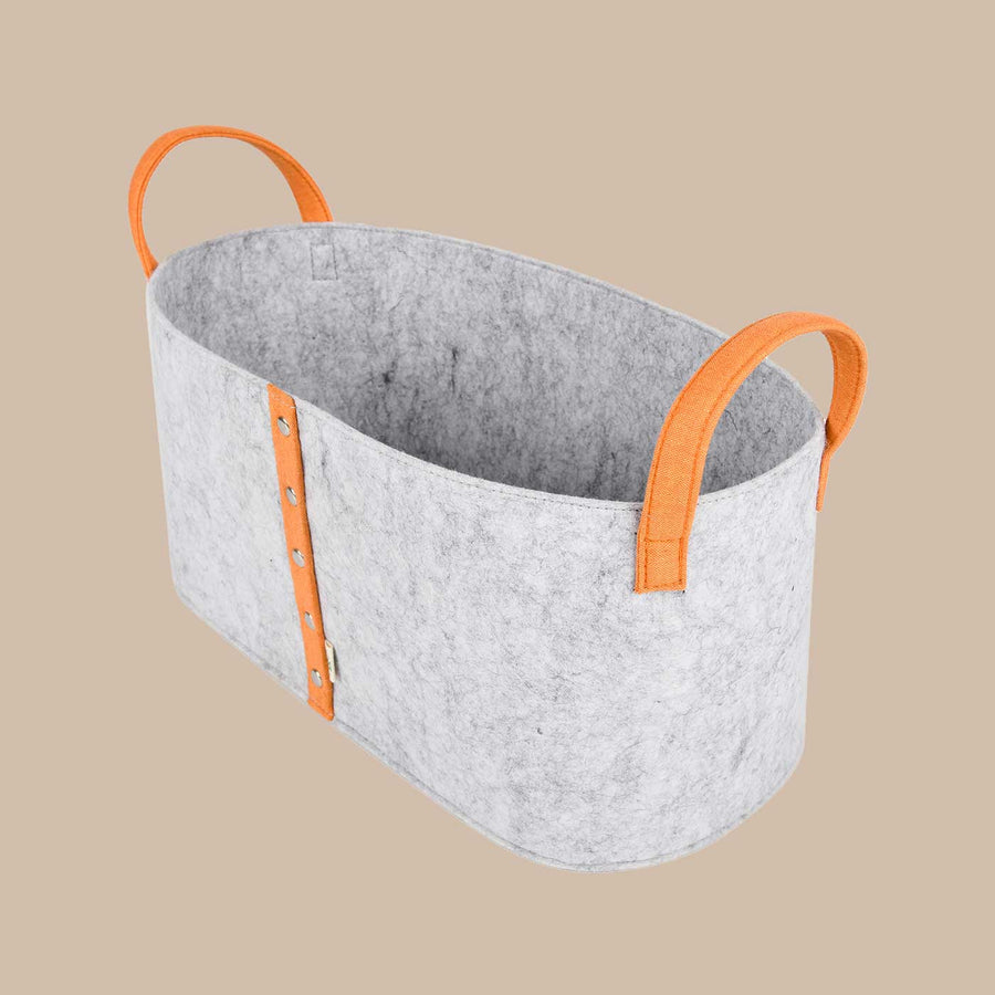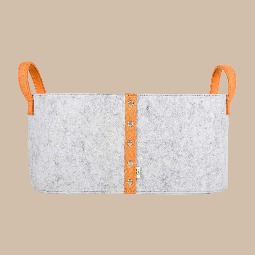 - Crafted from eco-felt material, this storage basket embodies sustainability.