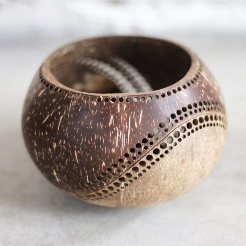- These uniquely hand-carved coconut shells are a great addition to your decor. These pieces can be used as tealight candle holders or place them as decorative lantern centerpieces.