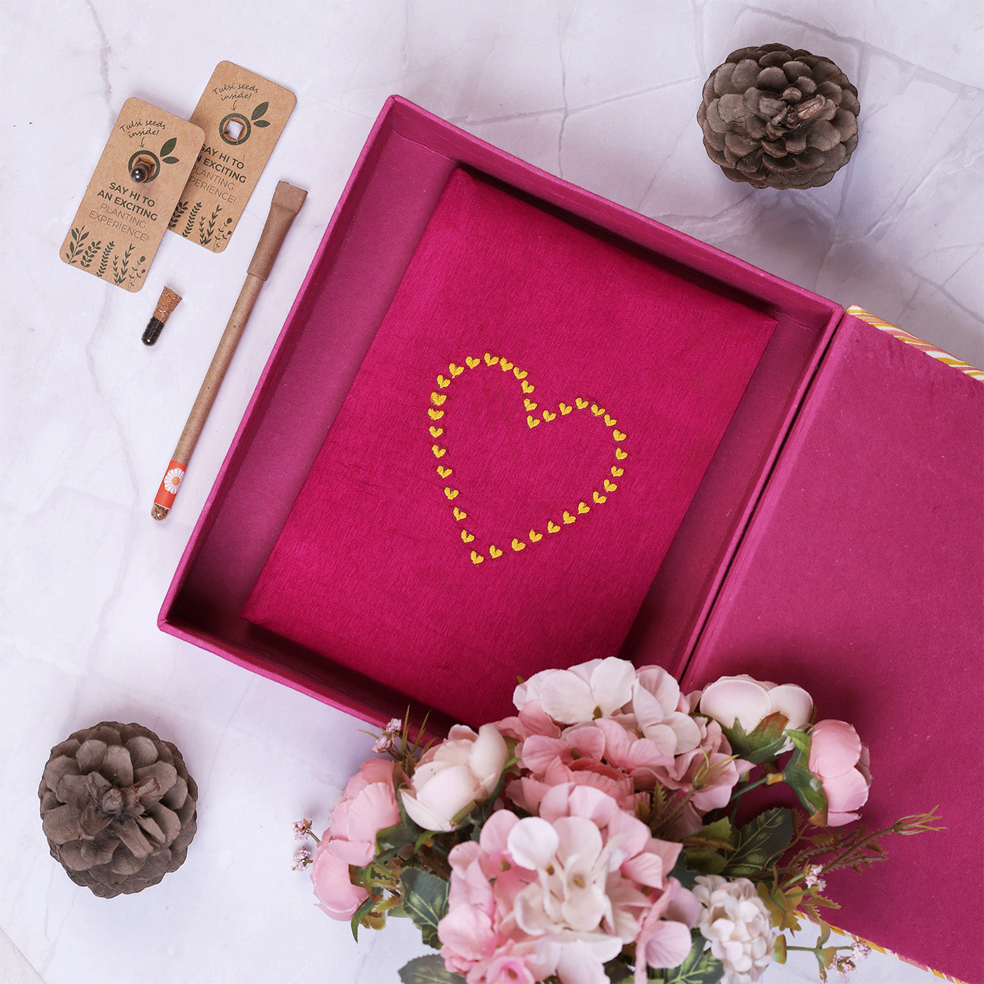 - The embroidered notebook adds a handcrafted charm, while the plantable pen and seeds bring in a small but meaningful reminder of growth.