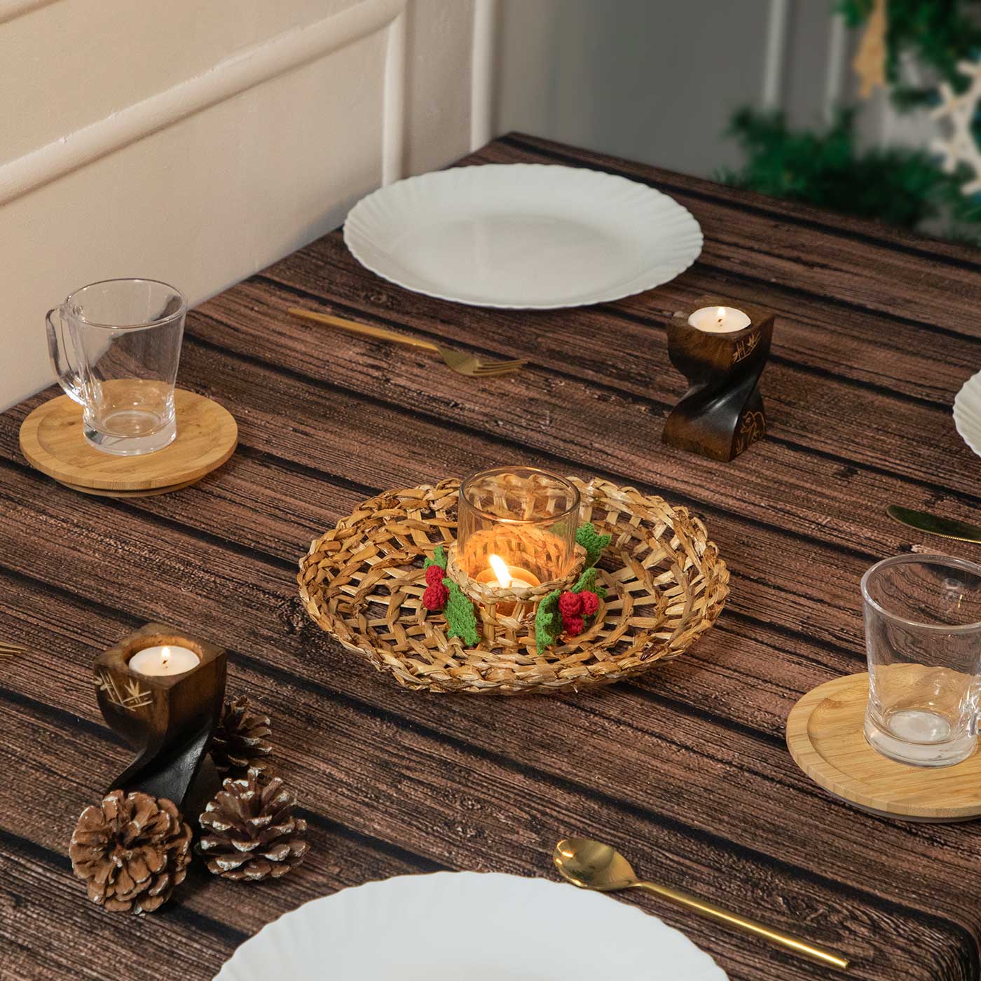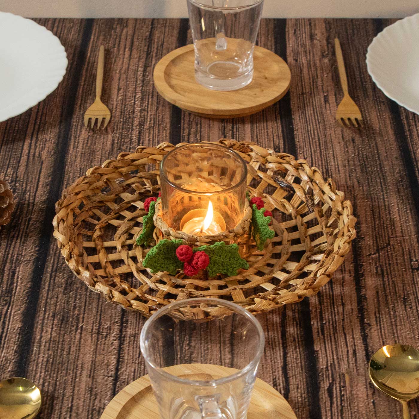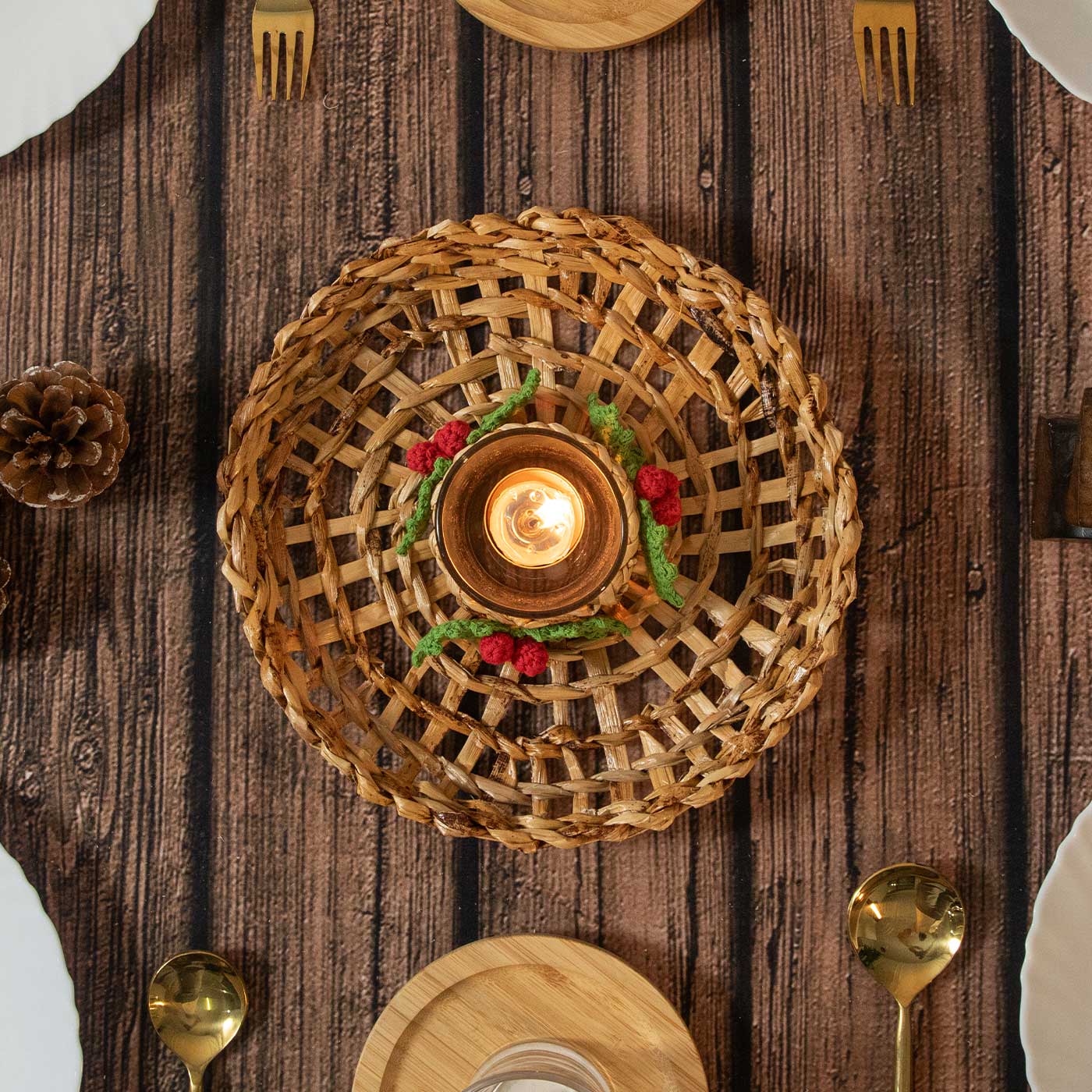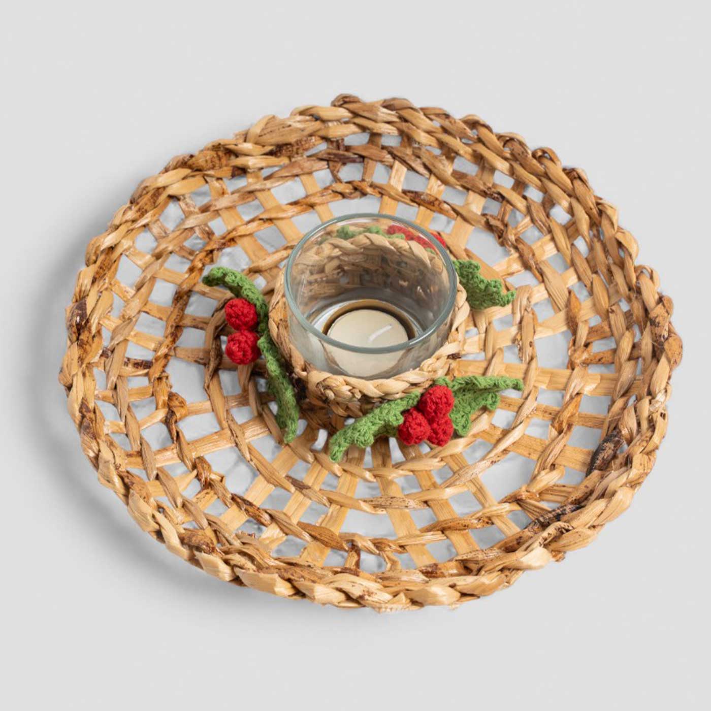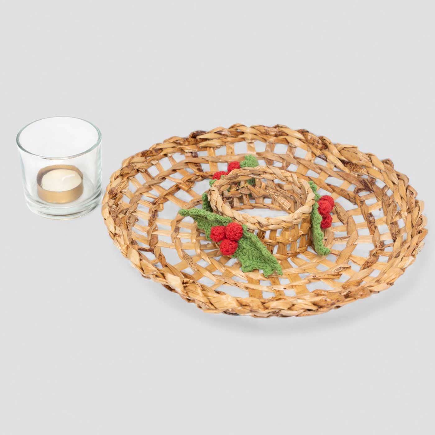 • Bring festive charm to your table with this handcrafted banana holly berry candle wreath.