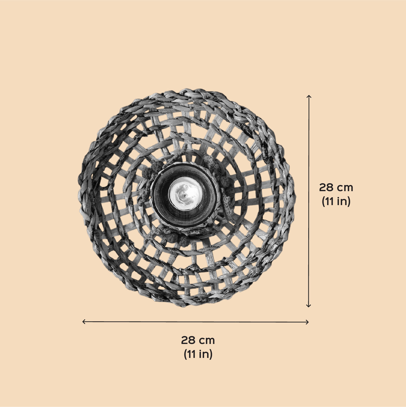 • Its woven banana base features a central glass tealight holder for a warm, inviting glow.