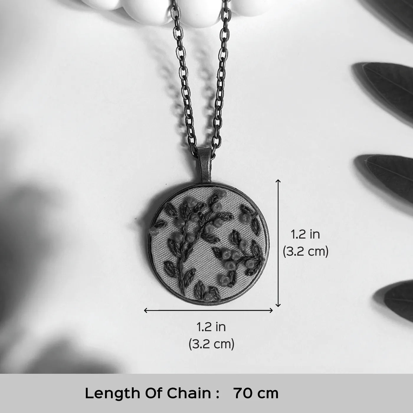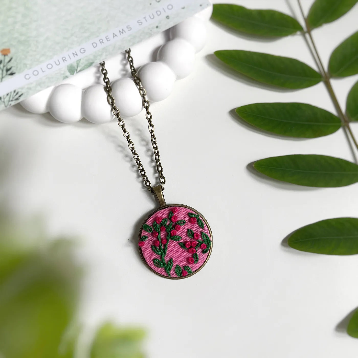 - This pendant captures the delicate beauty of a blooming rose in hand embroidery.