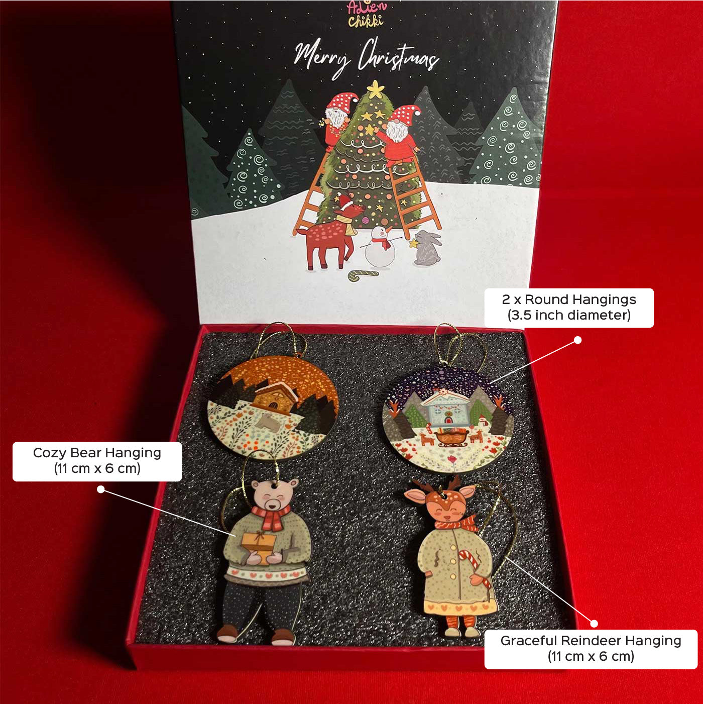 - Each hanging features cosy characters and winter scenes drawn with warmth, colour, and personality.