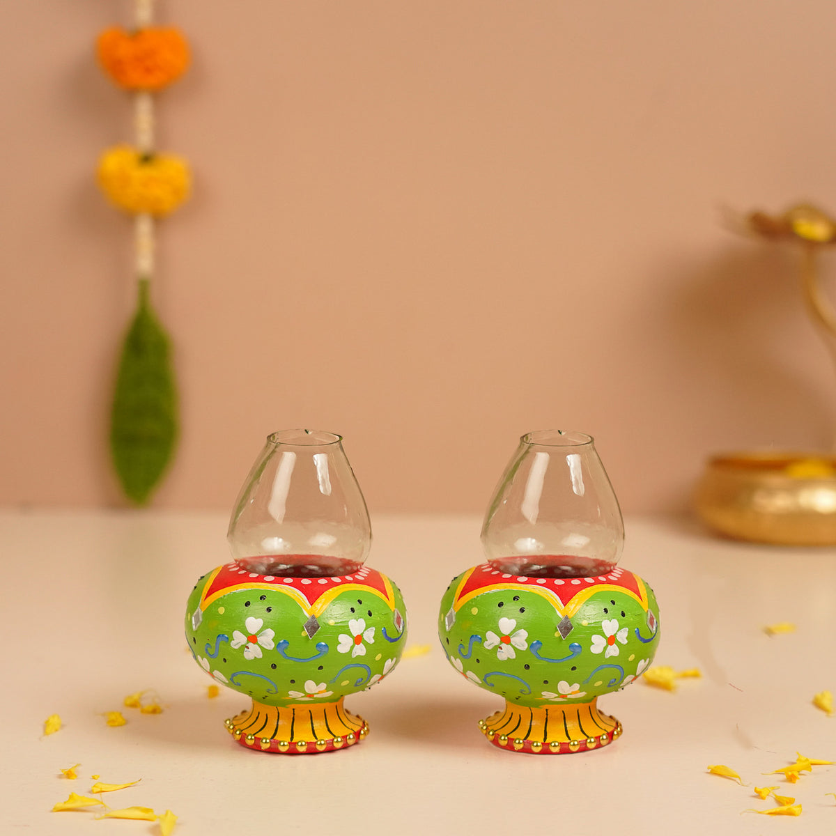 • Each diya is hand-painted with intricate floral patterns, adding a traditional charm to your décor.