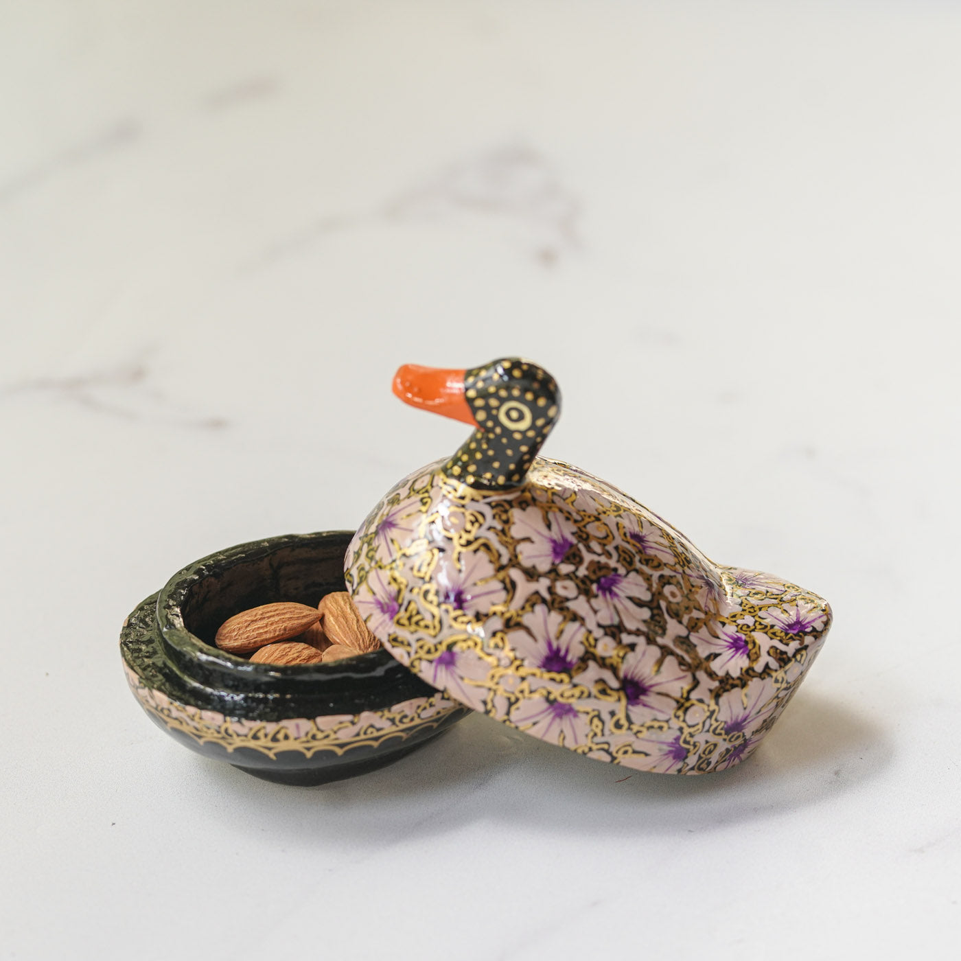 - This duck-shaped storage box is a fine example of Kashmiri paper mache artistry.