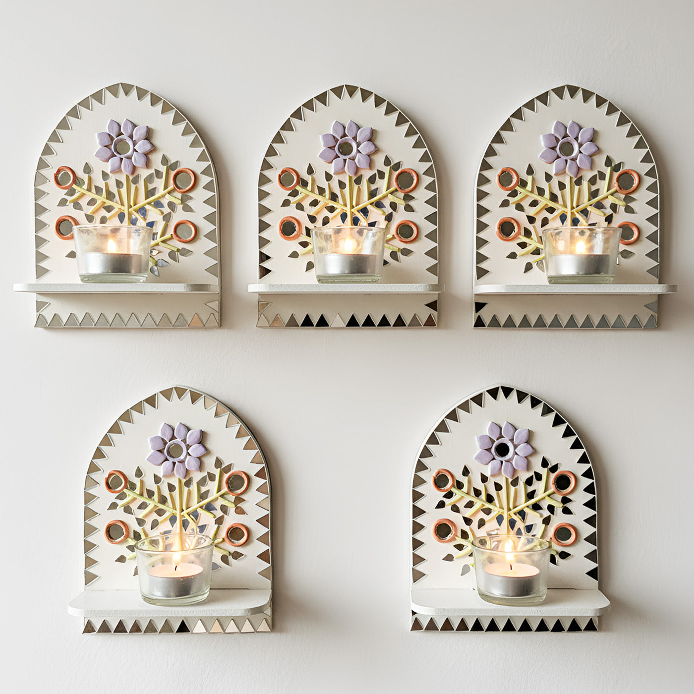 • Made from durable MDF, clay, and craft mirrors, it’s ideal for holding tealight candles and casting a warm glow.