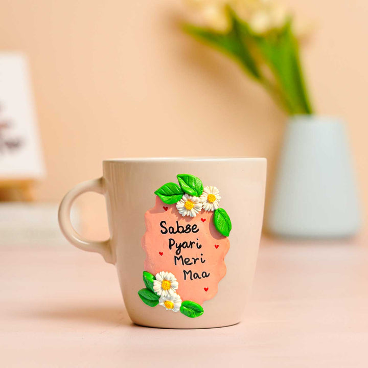 - Delight your mom with this beautifully handcrafted floral art mug, featuring intricate polymer clay flowers that add a personal touch.