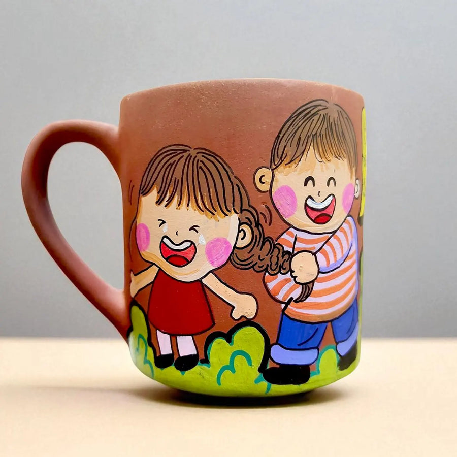 - This vibrant terracotta mug captures the special bond between siblings with a joyful hand-painted design.