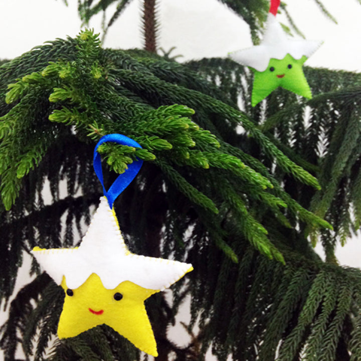 Handmade 3D Colourful Stars Felt Ornaments For Christmas Tree Decoration | Set Of 4