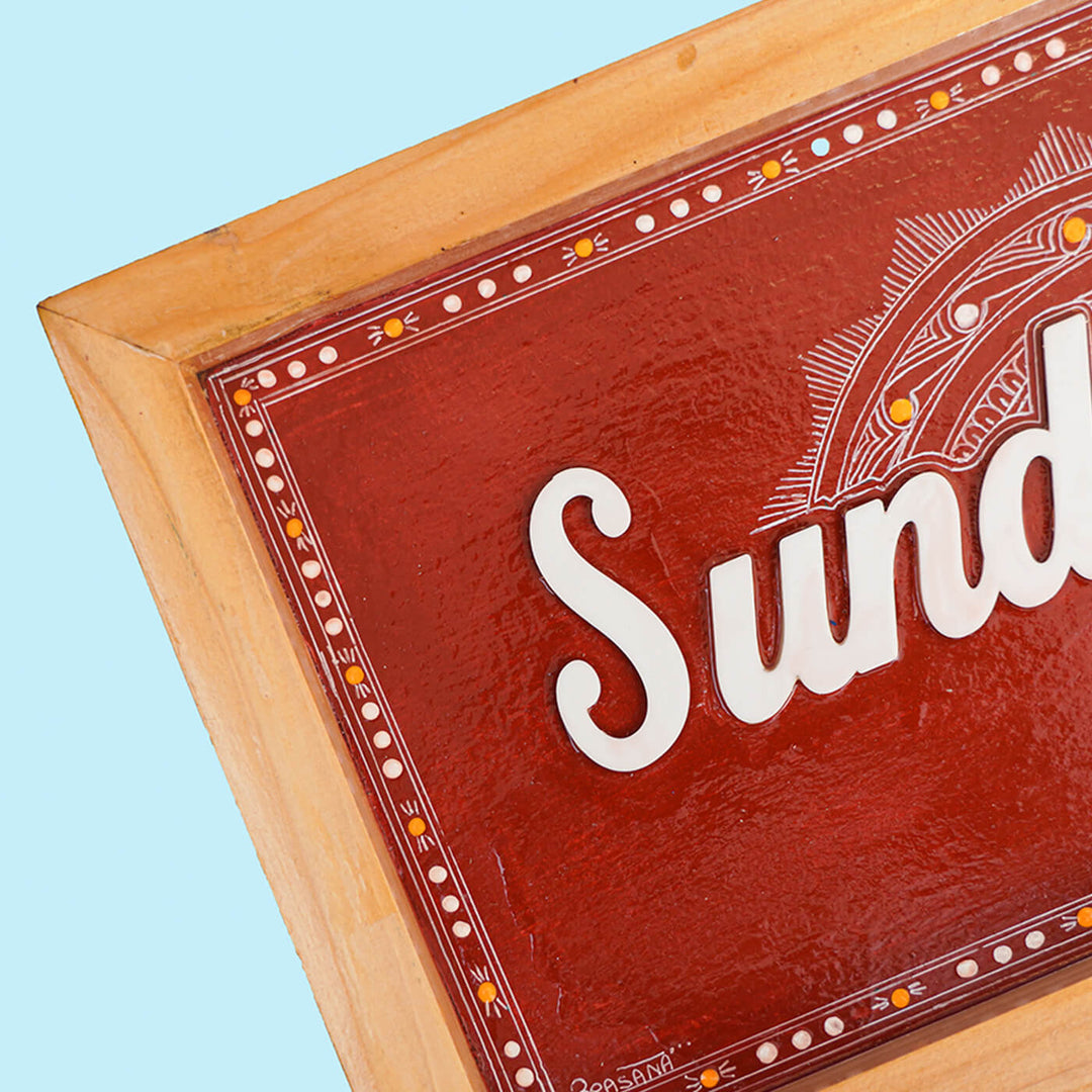 - Immerse yourself in the vibrant folk art of Uttarakhand with this meticulously crafted Aipan art wooden name plate. Aipan art features motifs inspired by nature and community beliefs, drawn on red-colored walls with rice flour paste, and is believed to bring good fortune during household ceremonies.