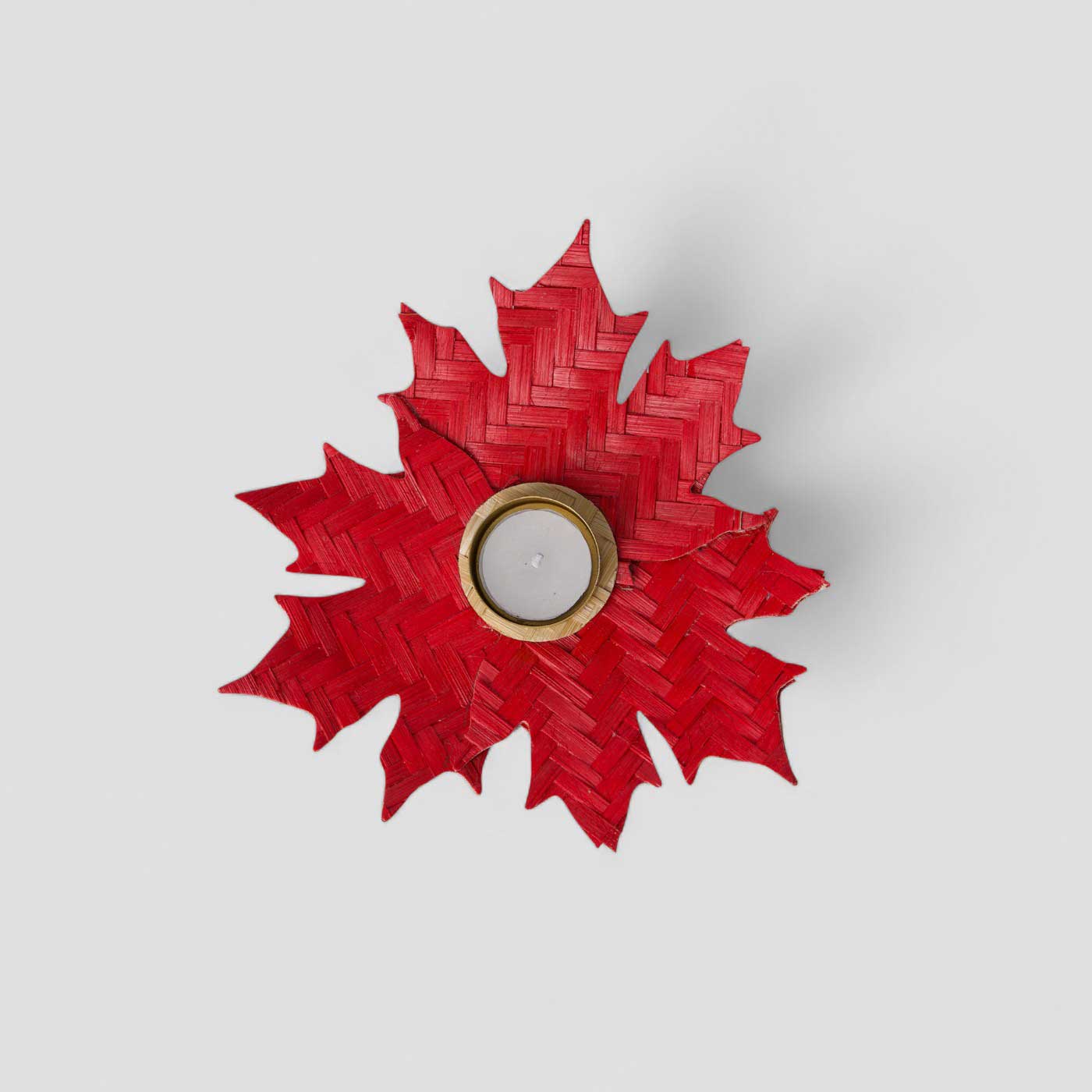 - Add festive warmth with this handcrafted red bamboo tea light holder.