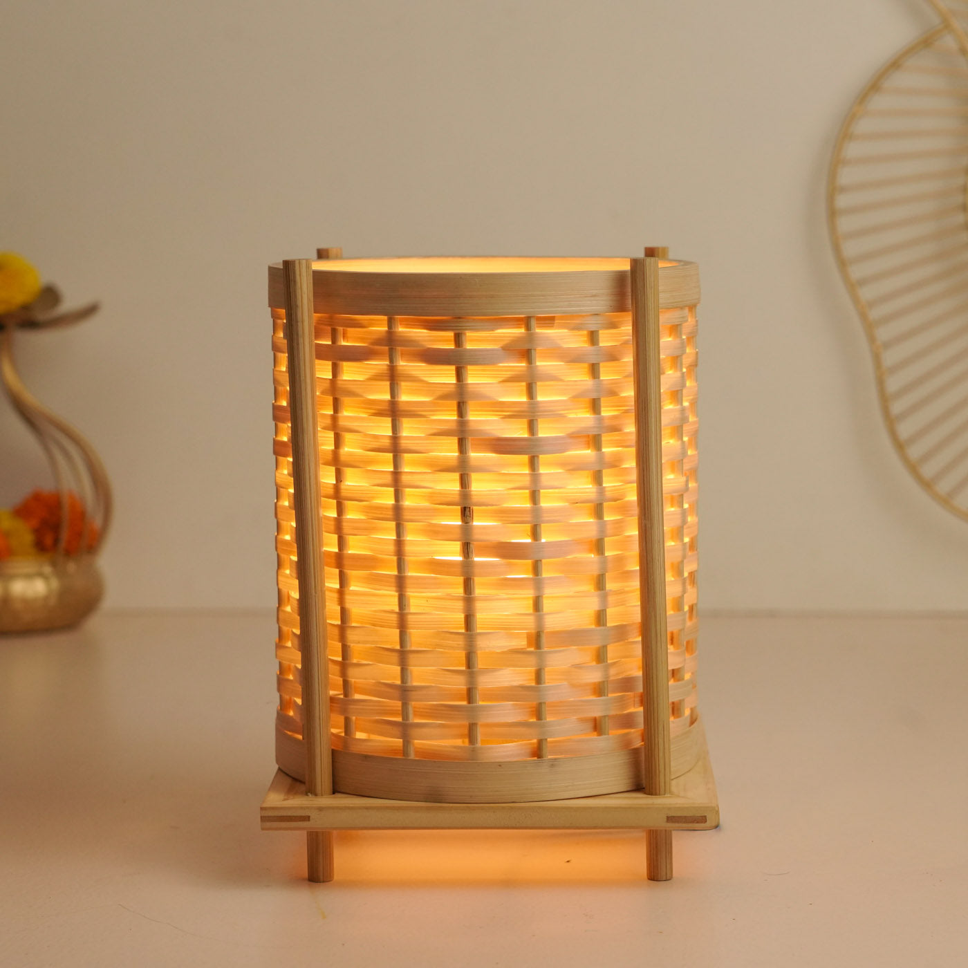 - Bring warmth and artisanal charm to your home with this handcrafted bamboo table lamp.
