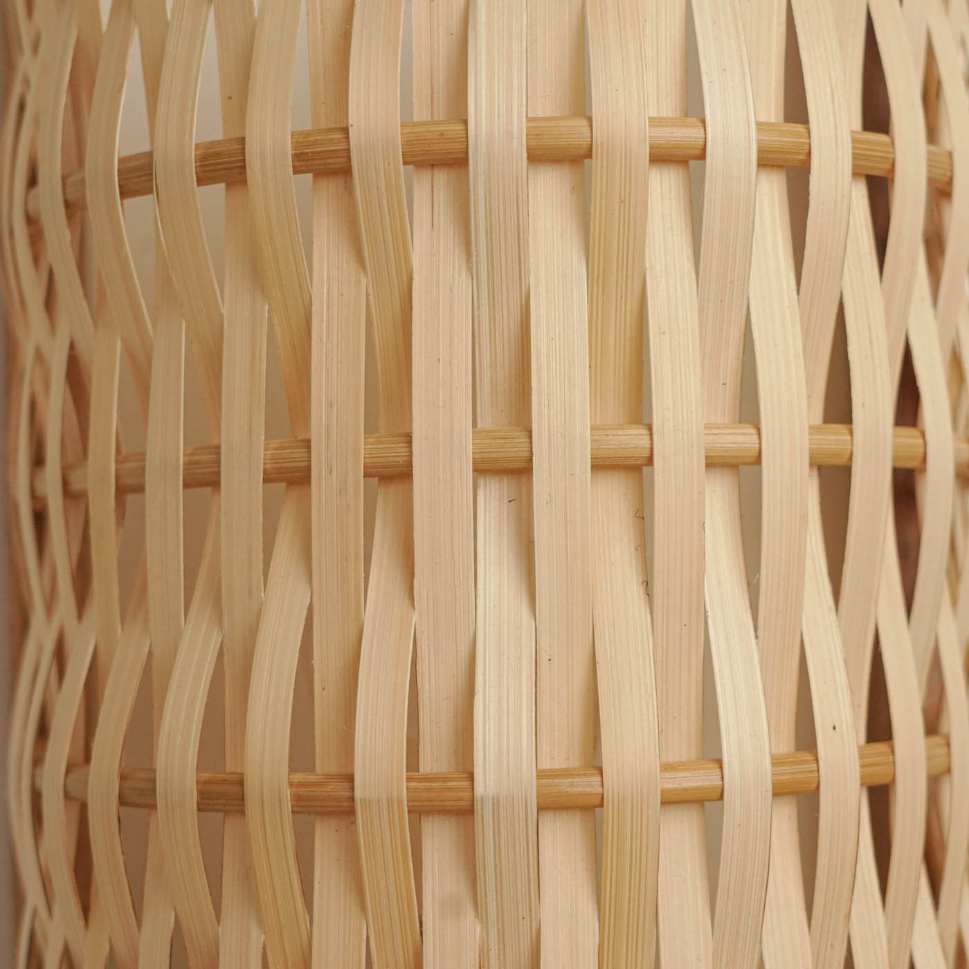 - Meticulously woven from natural bamboo and framed in wood, it emits a soft, soothing glow.