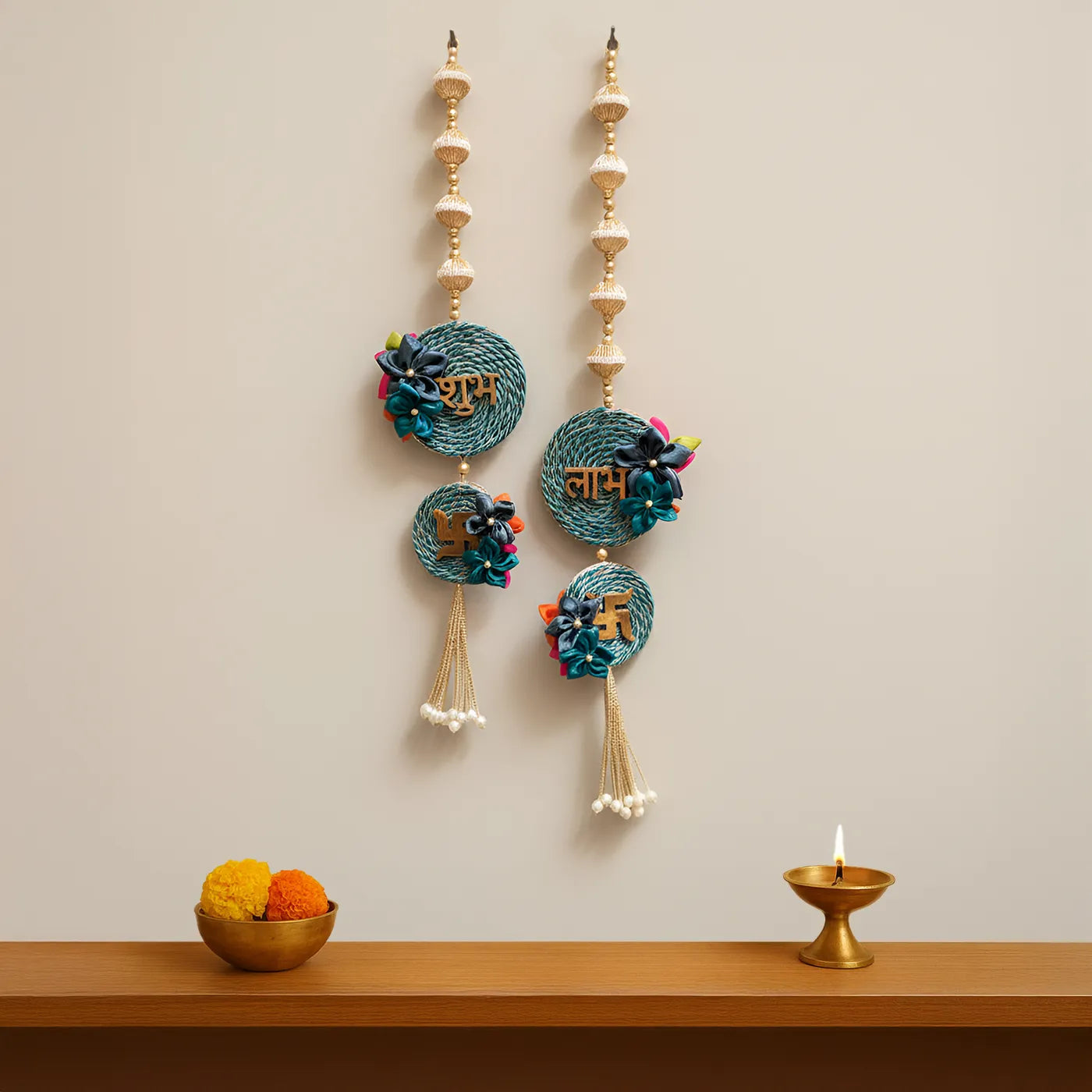 - Add double the sparkle to your festive décor with these handcrafted reversible Shubh Labh hangings.