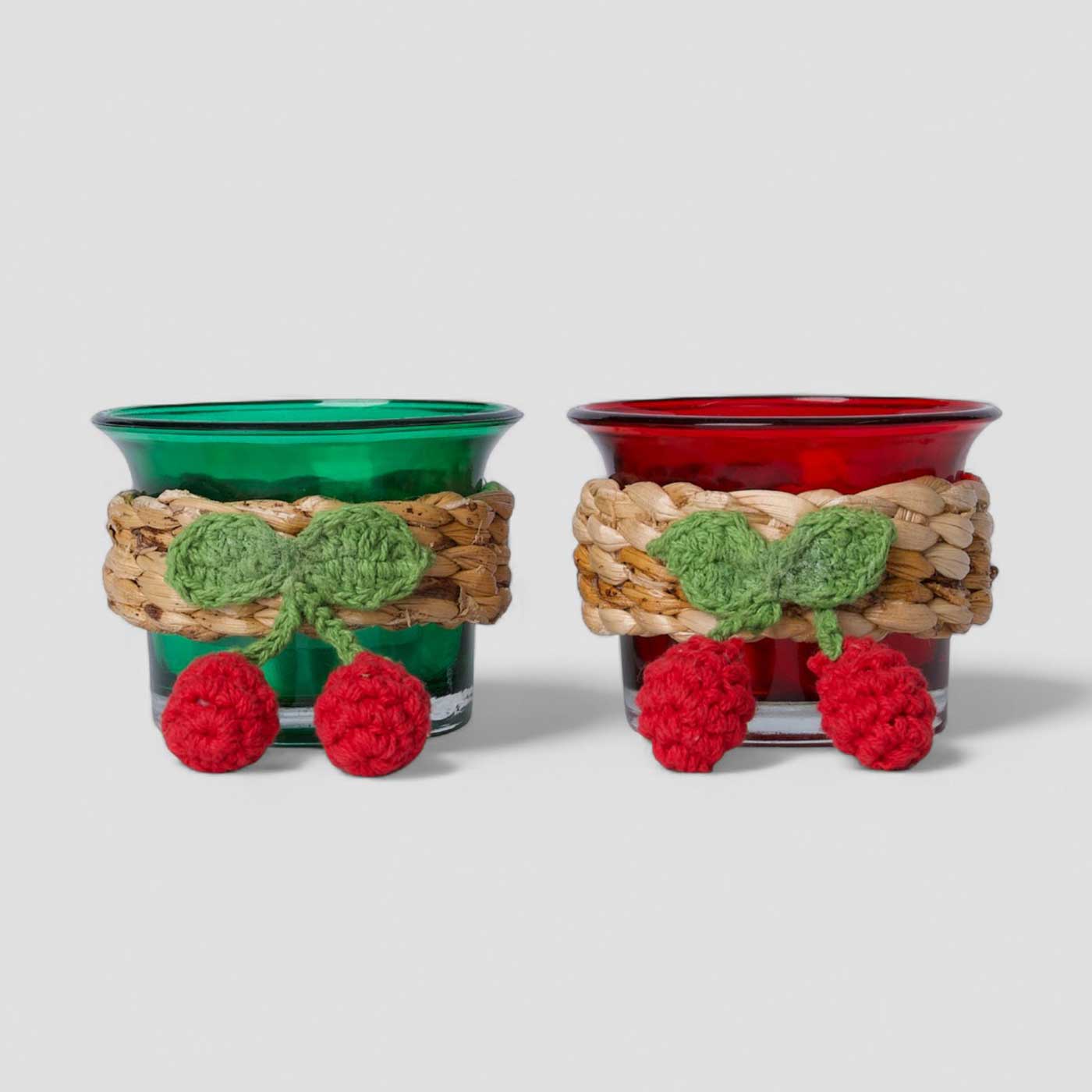 - Add a playful festive touch with this handcrafted cherry tea light holder set.