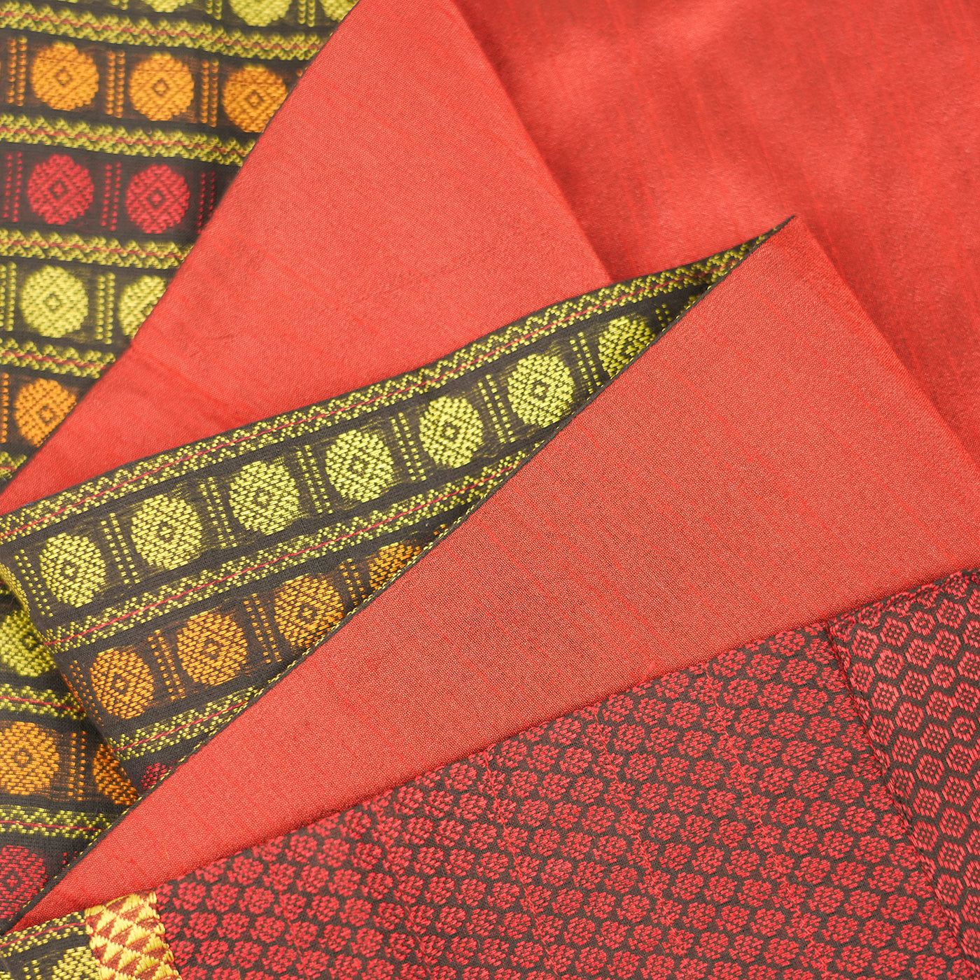 - Warm-toned Khunn fabric panels showcase the bead motif in vibrant, traditional weaves.