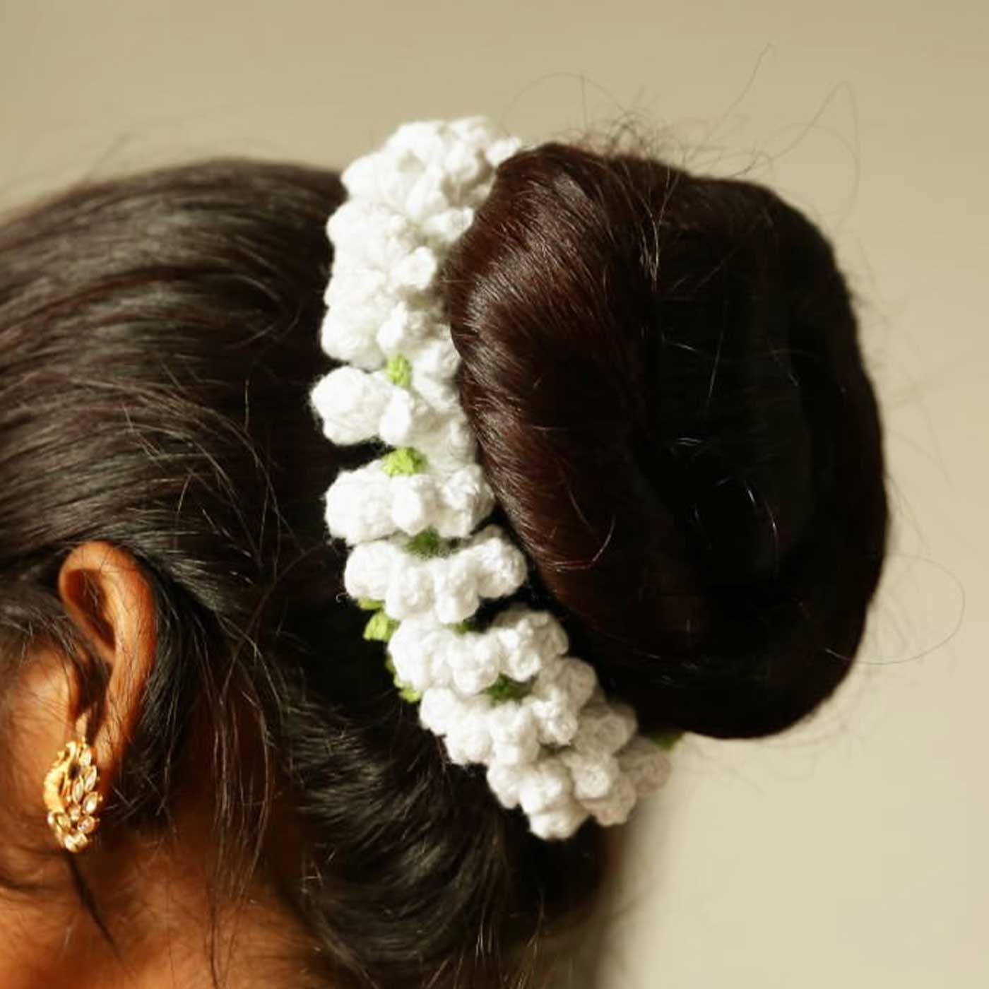 - A beautifully handcrafted crochet gajra designed to stay fresh forever.