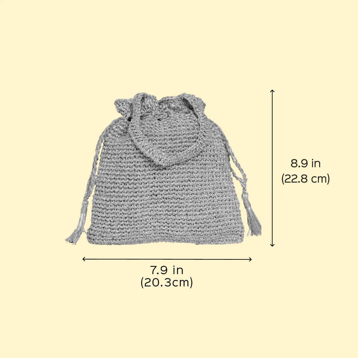 • Densely crocheted for a structured form and finished with a smooth satin lining for durability.