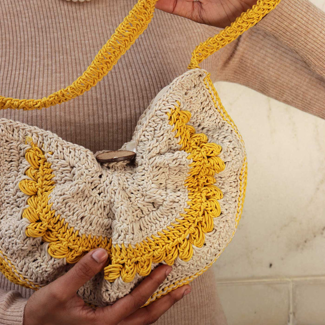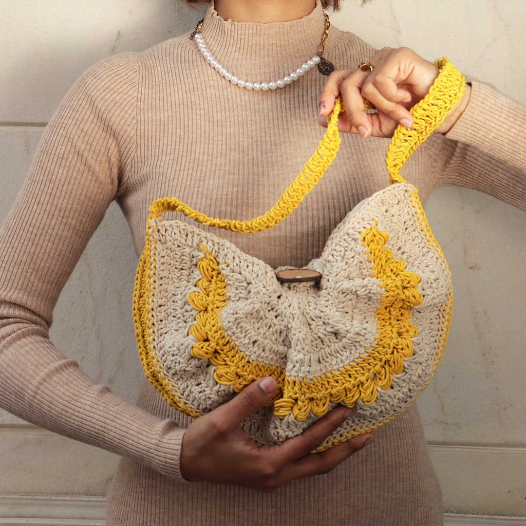 - Add a bohemian charm to your outfit with the Handmade Crochet Sea Shell Cross-Body Bag.