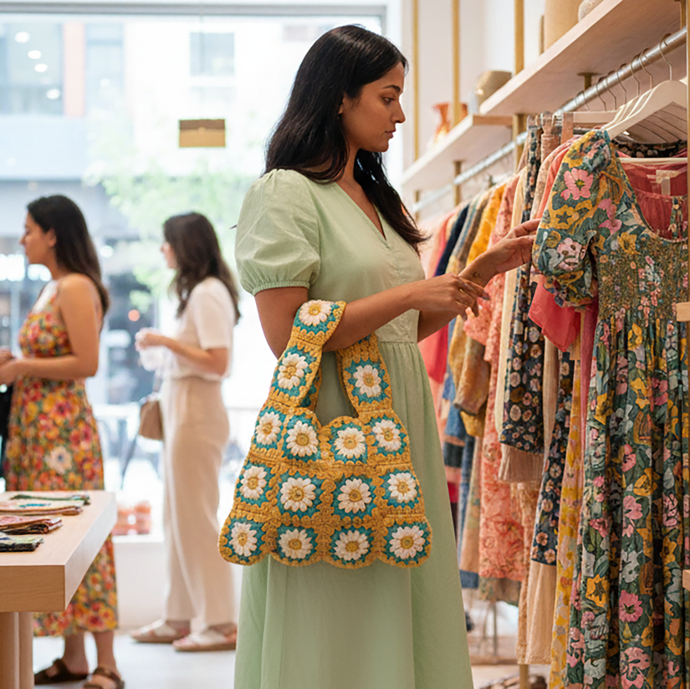 - Brighten your days with this charming handmade crochet shopper tote bag.