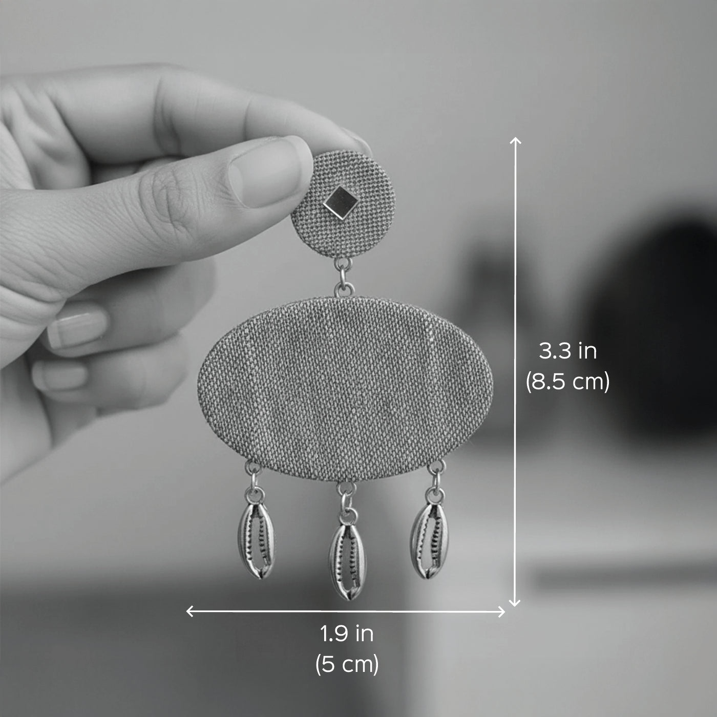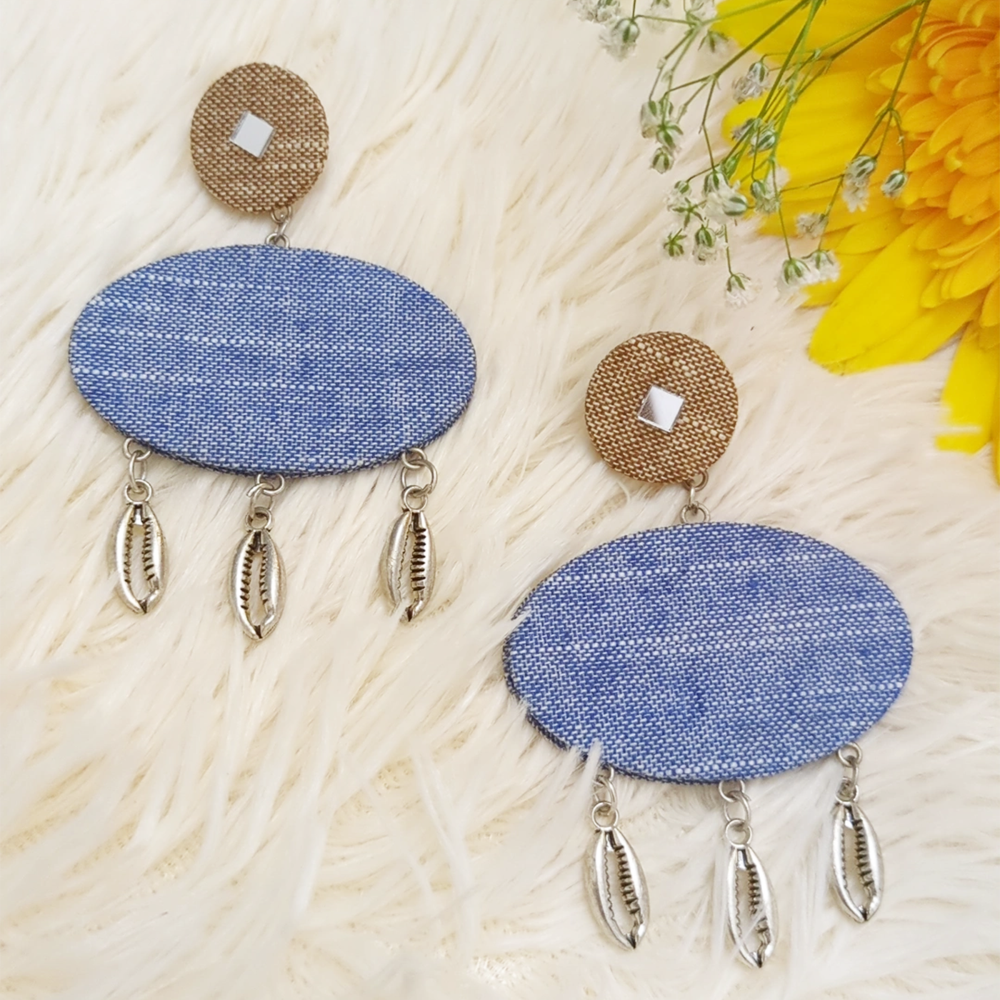 • These earrings feature a chic shell-inspired design crafted on soft denim fabric.
