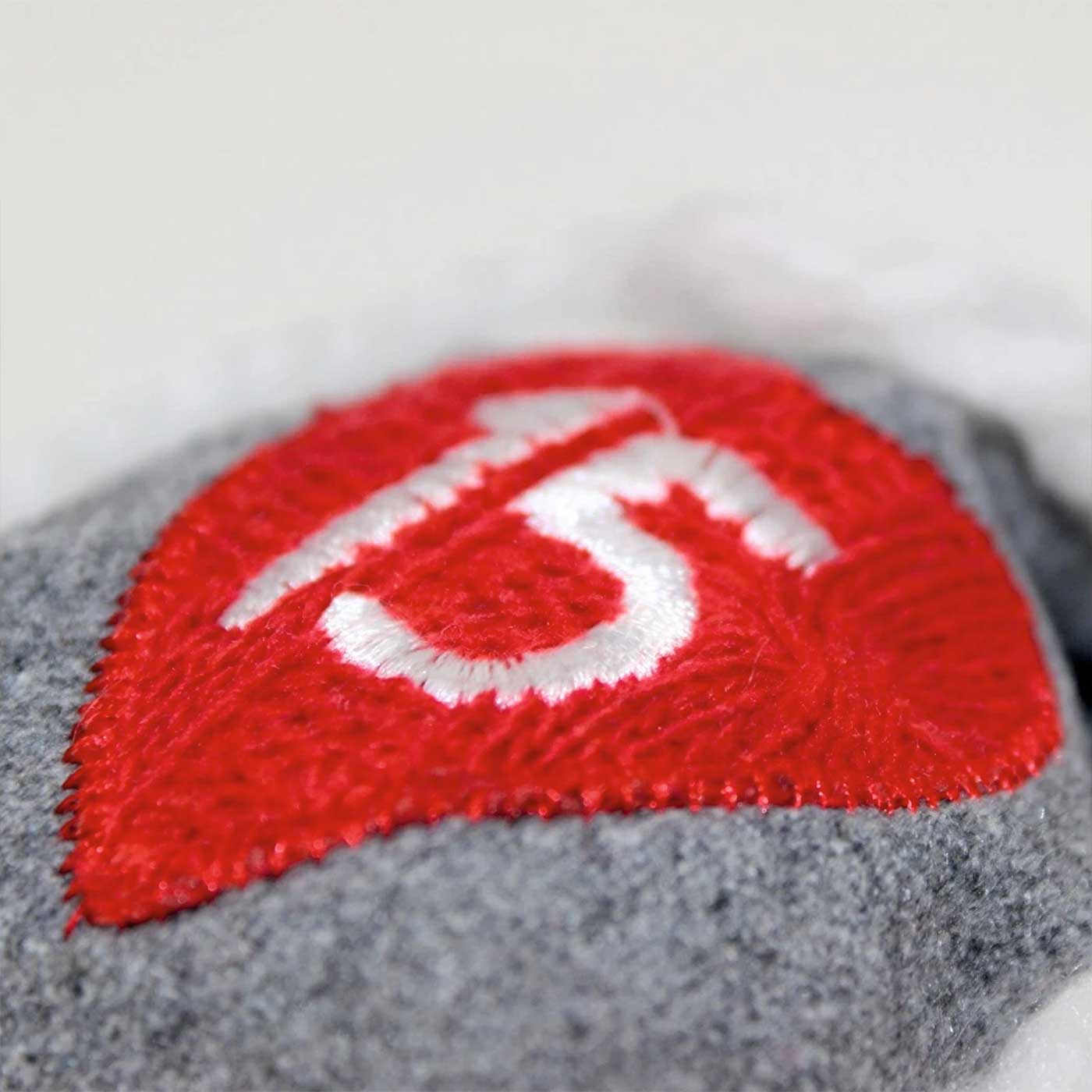- Featuring 24 soft felt pouches in red, white, and grey, each embroidered with a number for every day of December.