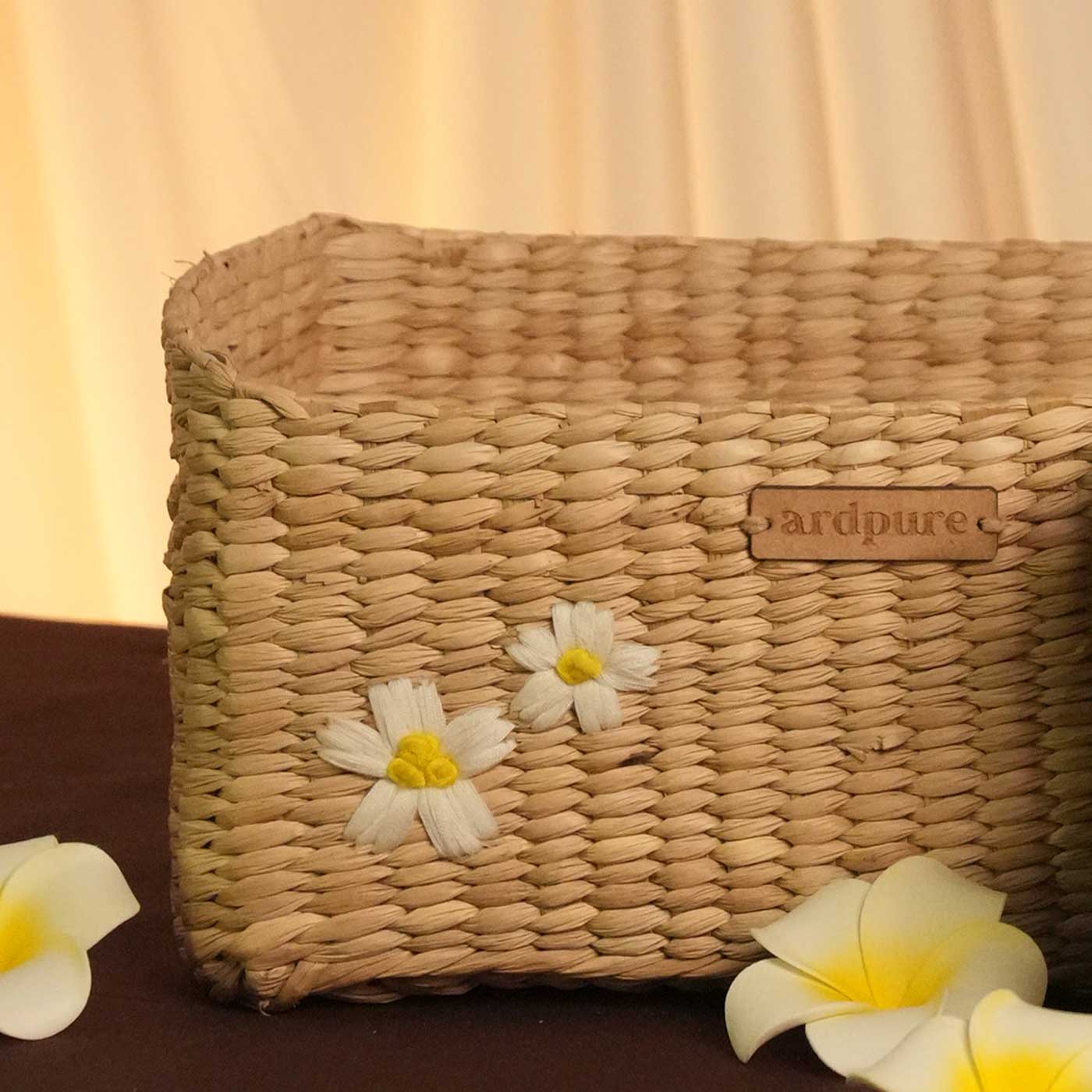 - Bring home handcrafted elegance with the Handmade Floral Embroidered Kauna Grass Organizer.
