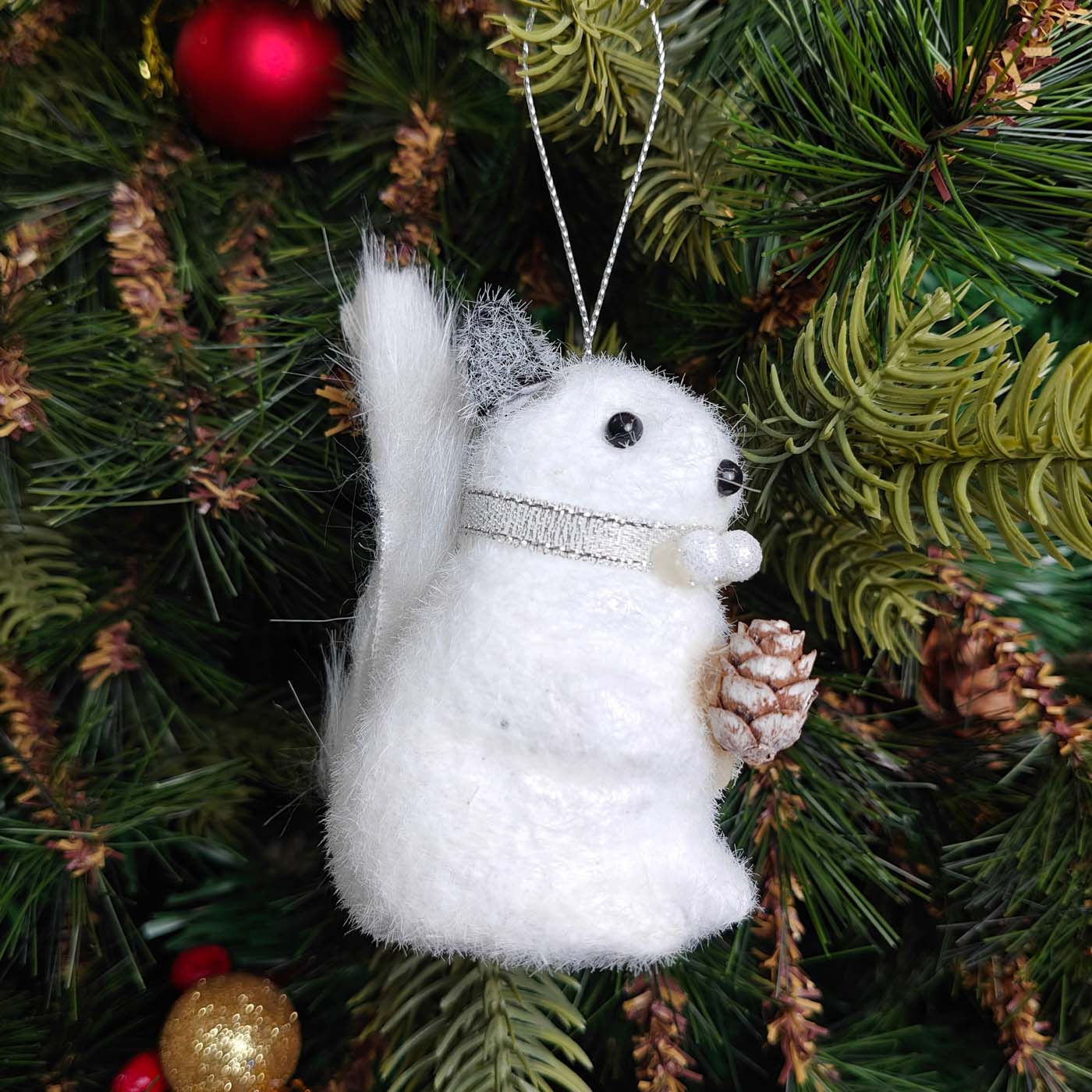 - Bring woodland charm to your holiday décor with this handcrafted Frosty Pine Squirrel ornament.