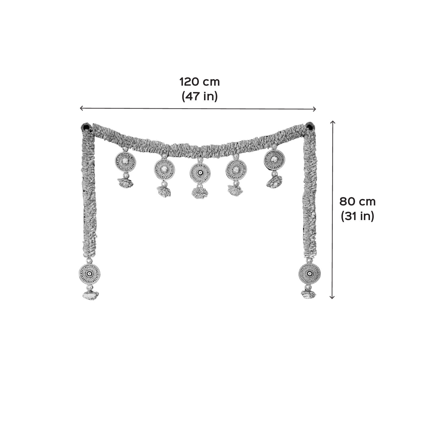 - Designed with two centre string scallops and side latkans, this toran offers a grand, layered look that enhances your doorway or pooja room with a festive charm.