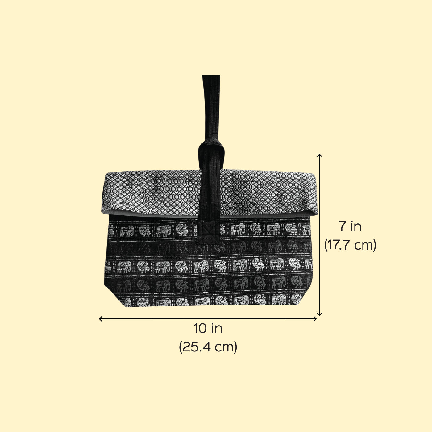 • Handwoven from richly textured Khunn fabric, this wrist purse celebrates Karnataka’s vibrant textile heritage.
