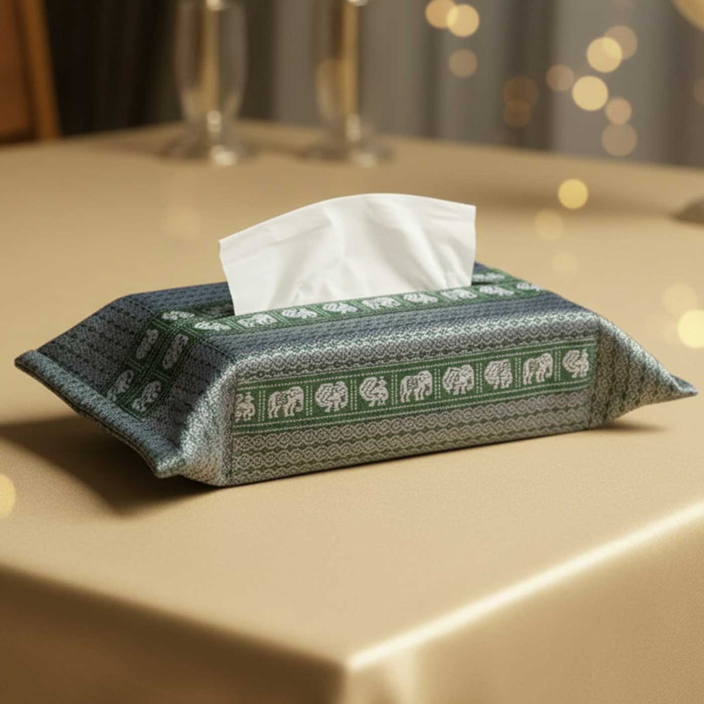 - Woven by skilled kaarigars from Karnataka, this Khunn fabric tissue box cover blends function with tradition.