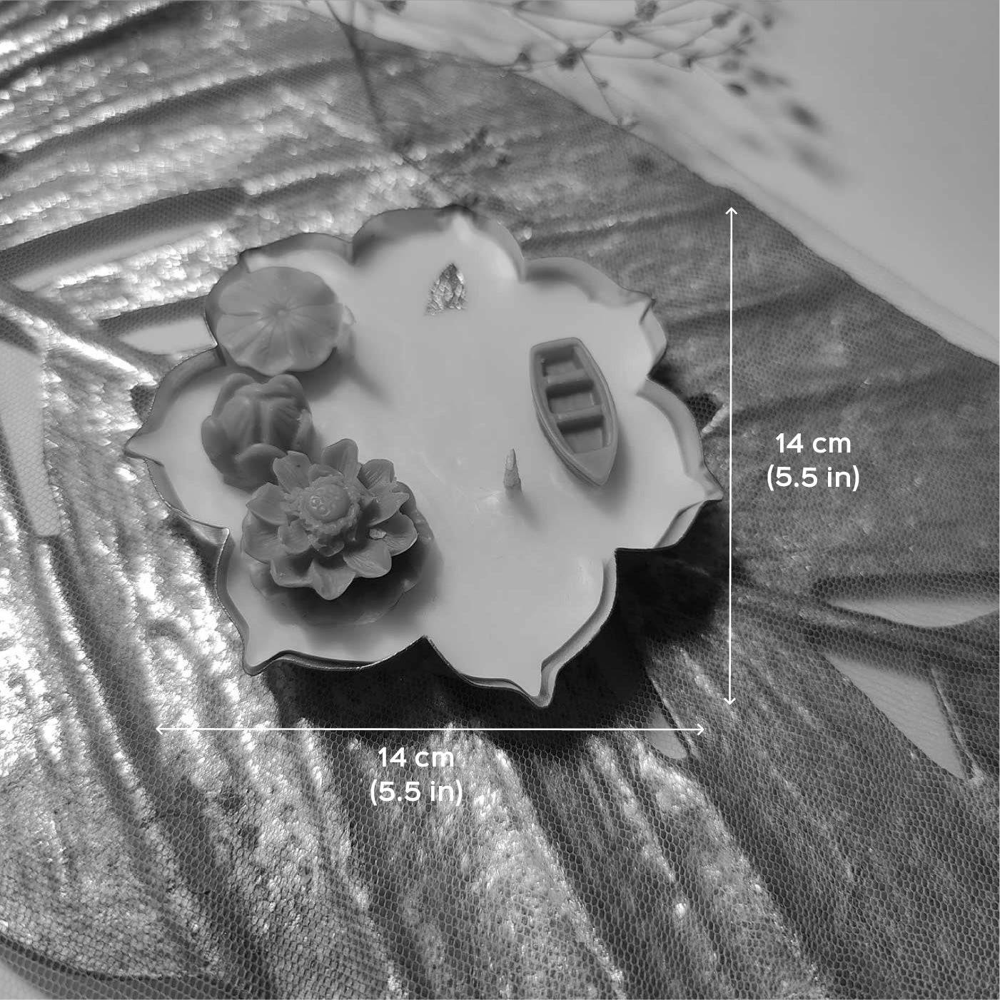 • Resting in a stylish metal urli, it evokes the beauty of a serene lotus pond filled with floating blooms.