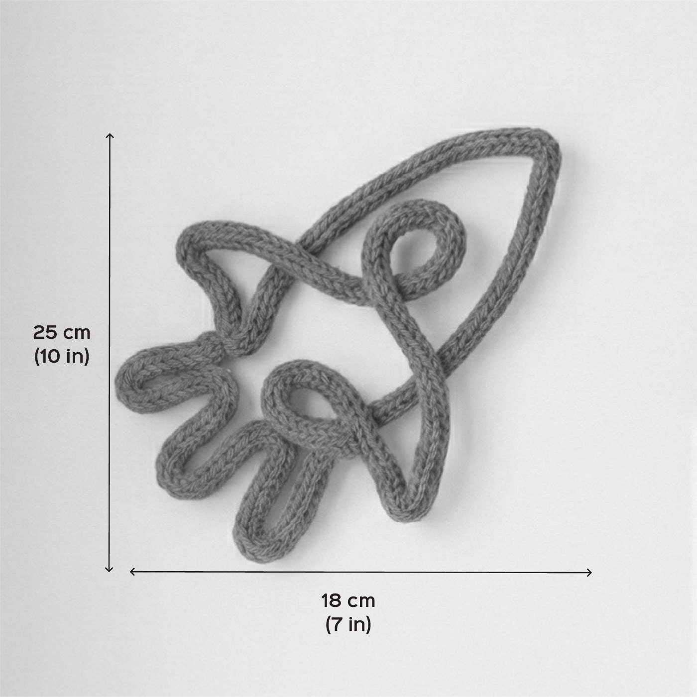 - Brighten up your child’s room with this cheerful knitted wire rocket.