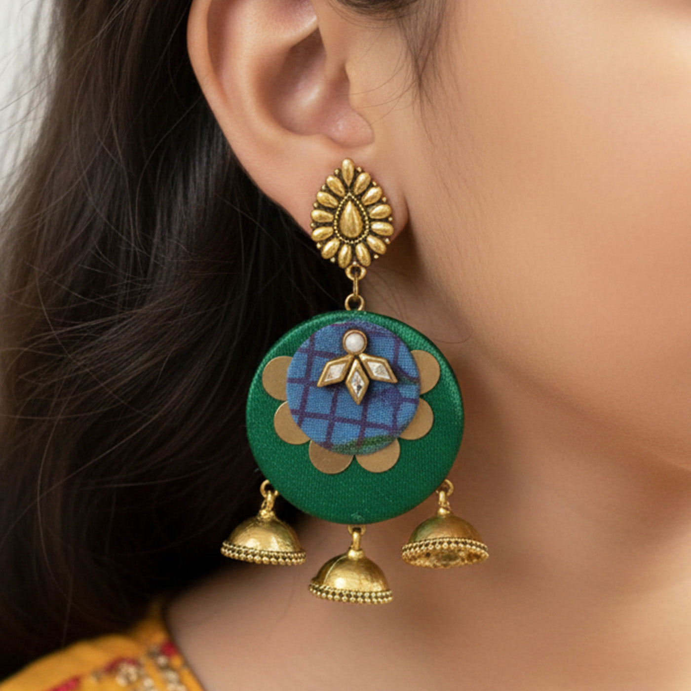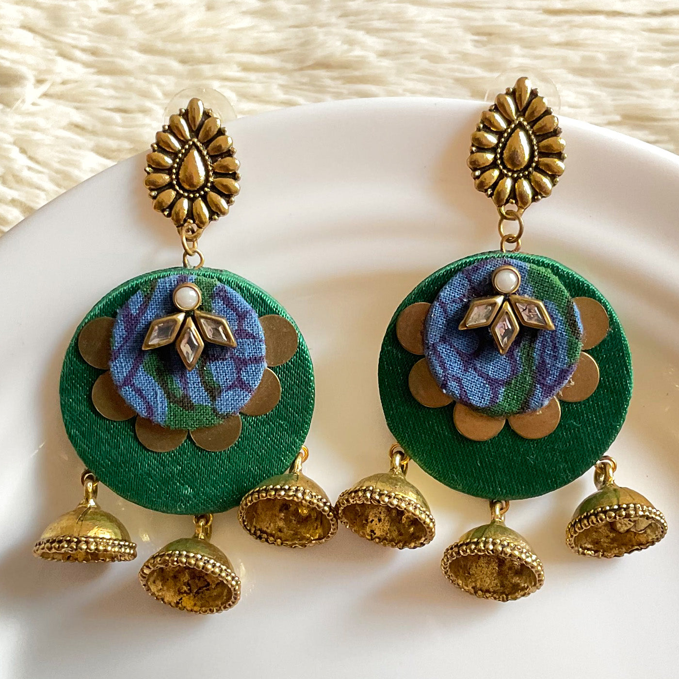 - These handcrafted jhumki earrings are created using richly textured traditional Gaji silk.
