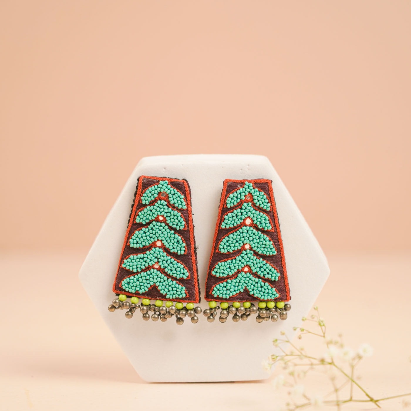 - These earrings showcase intricate mirror work paired with delicate bead accents, bringing playful sparkle to every movement.