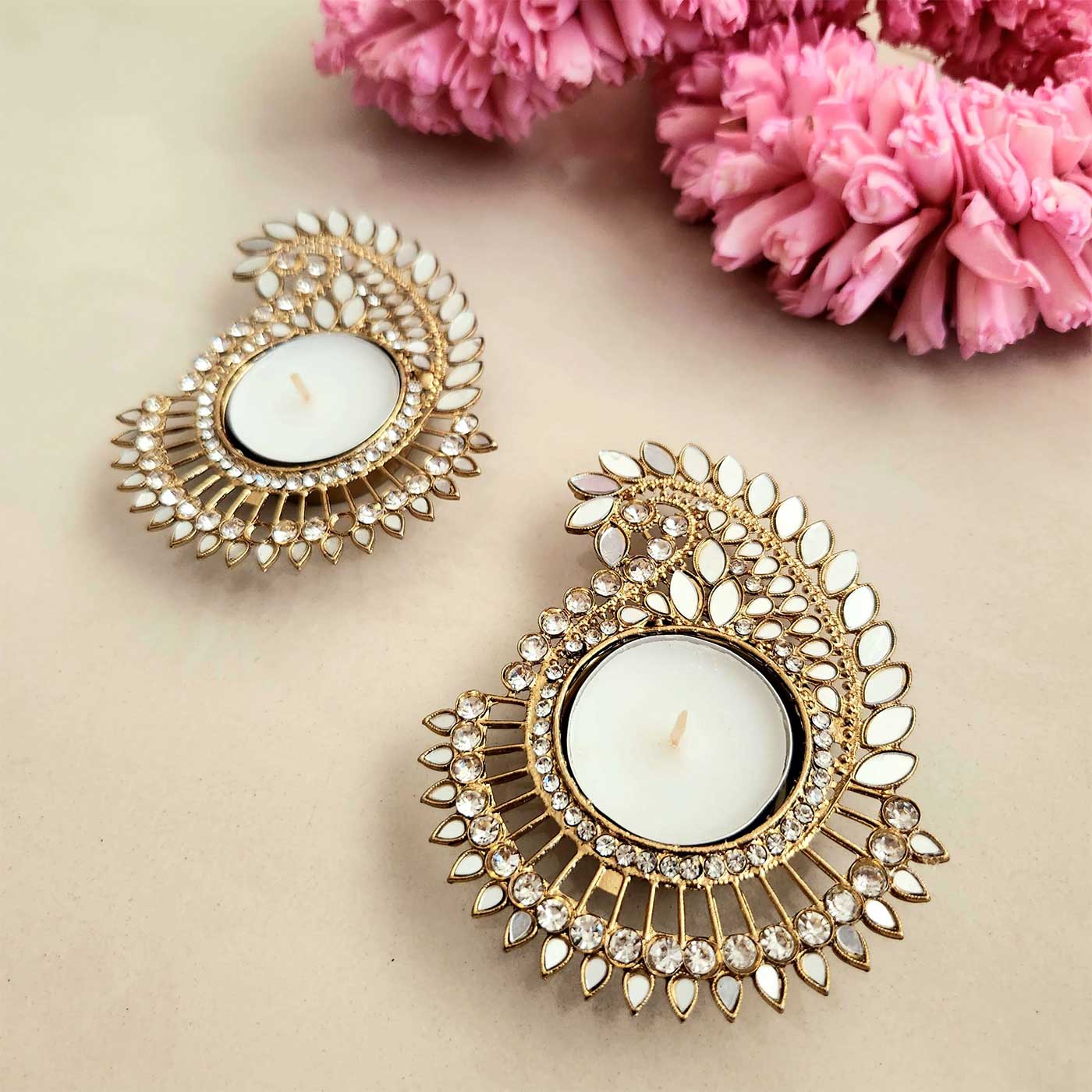 - Intricate mirror work on each piece beautifully reflects the soft glow of tealights, creating a warm and inviting ambiance.