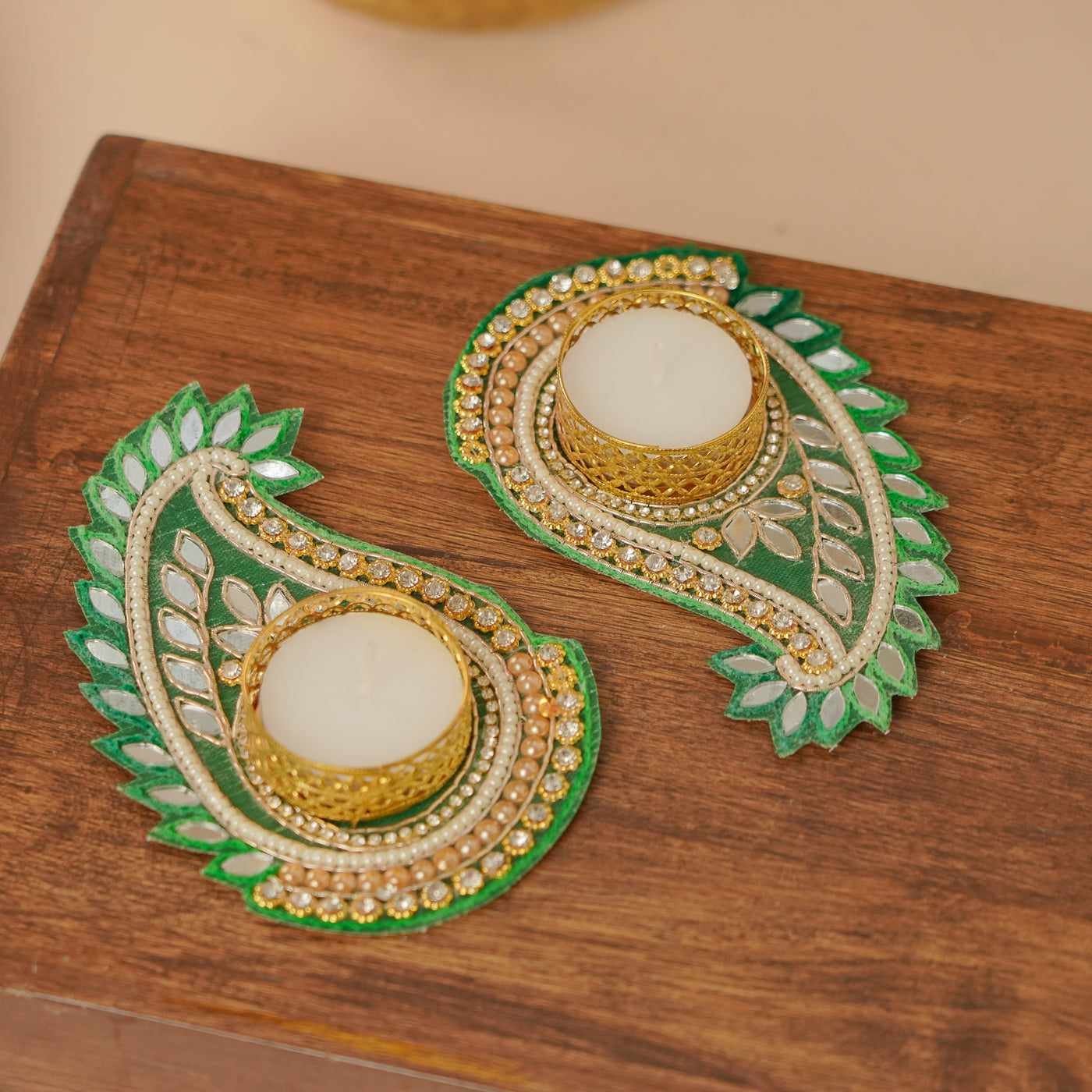 - Elevate your festive décor with this handcrafted multicolor paisley tealight holder set, a perfect blend of artistry and celebration.