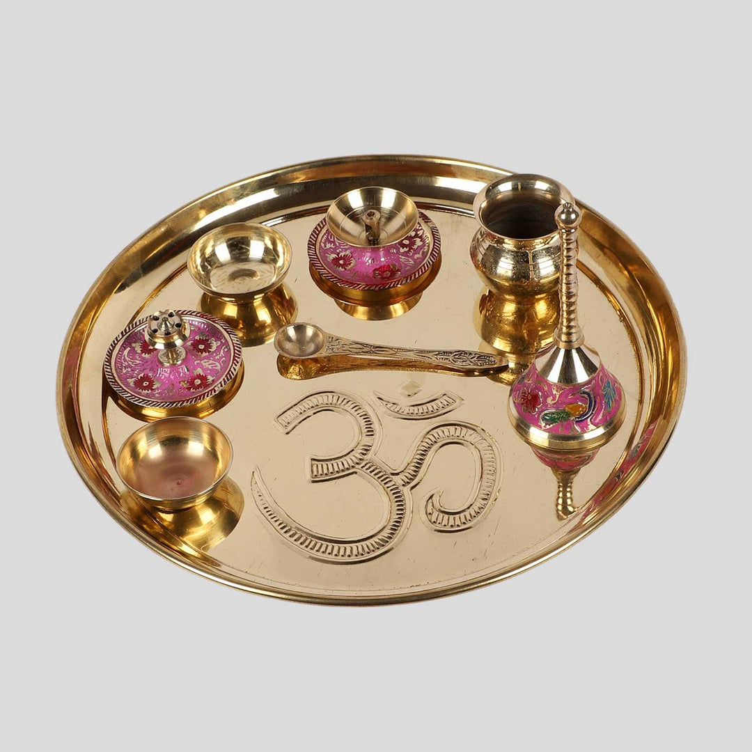 - This Pooja Thali set is meticulously assembled to provide a sacred collection for your worship needs!