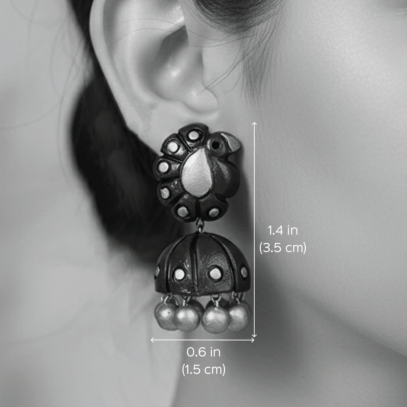 • Inspired by the vibrant motifs of peacocks, these terracotta jhumkas are more than earrings—they’re wearable art.