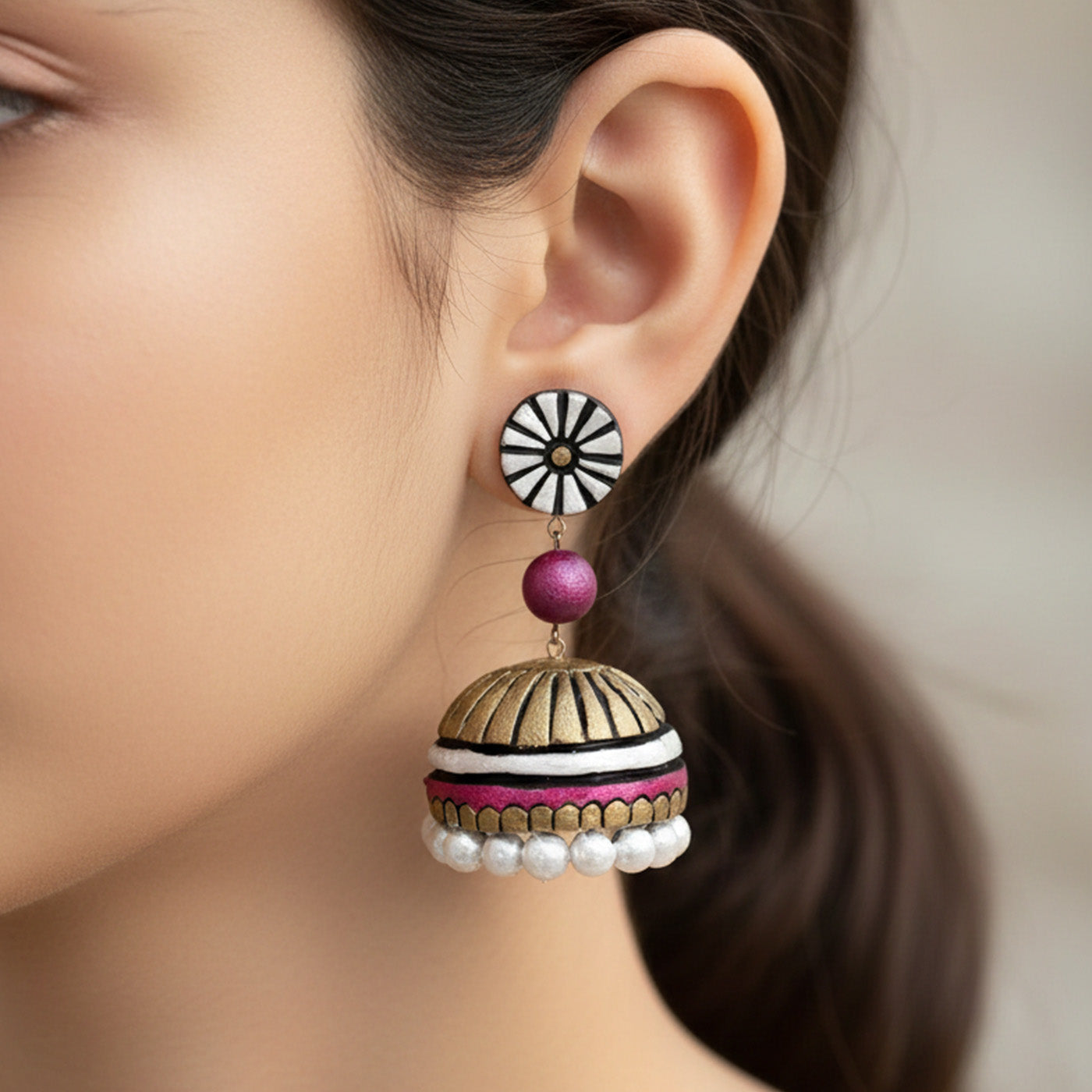 - Handcrafted from lightweight terracotta, the oversized dome follows a classic jhumka silhouette.