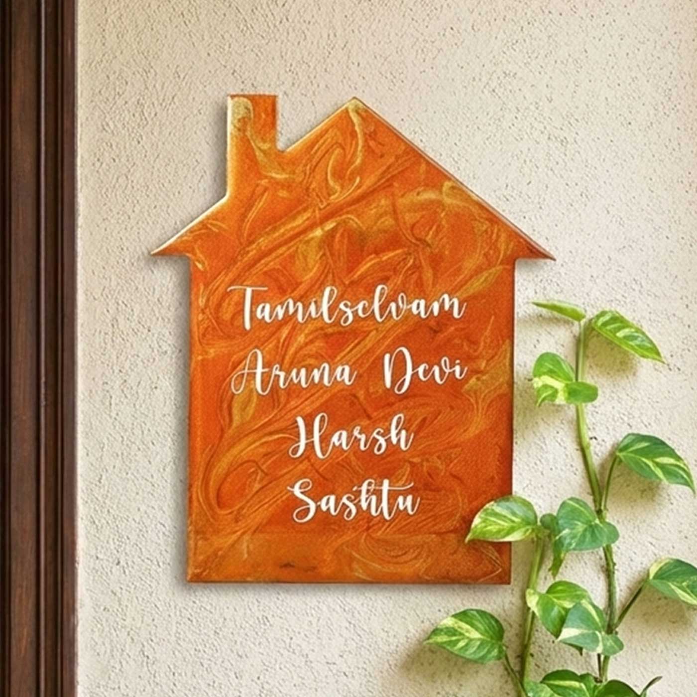 - Elevate the entrance of your home with this handcrafted resin nameplate, made on a durable MDF base.
