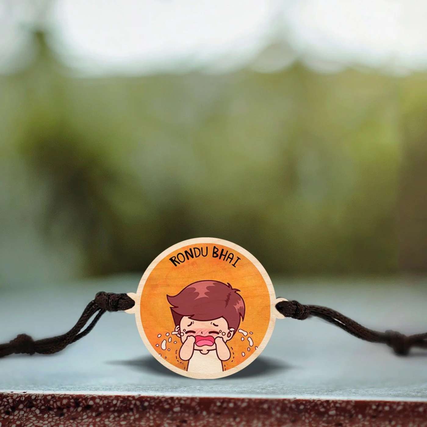 - Express your sibling love with this Rondu Bhai wooden rakhi, intricately crafted from premium imported plywood!