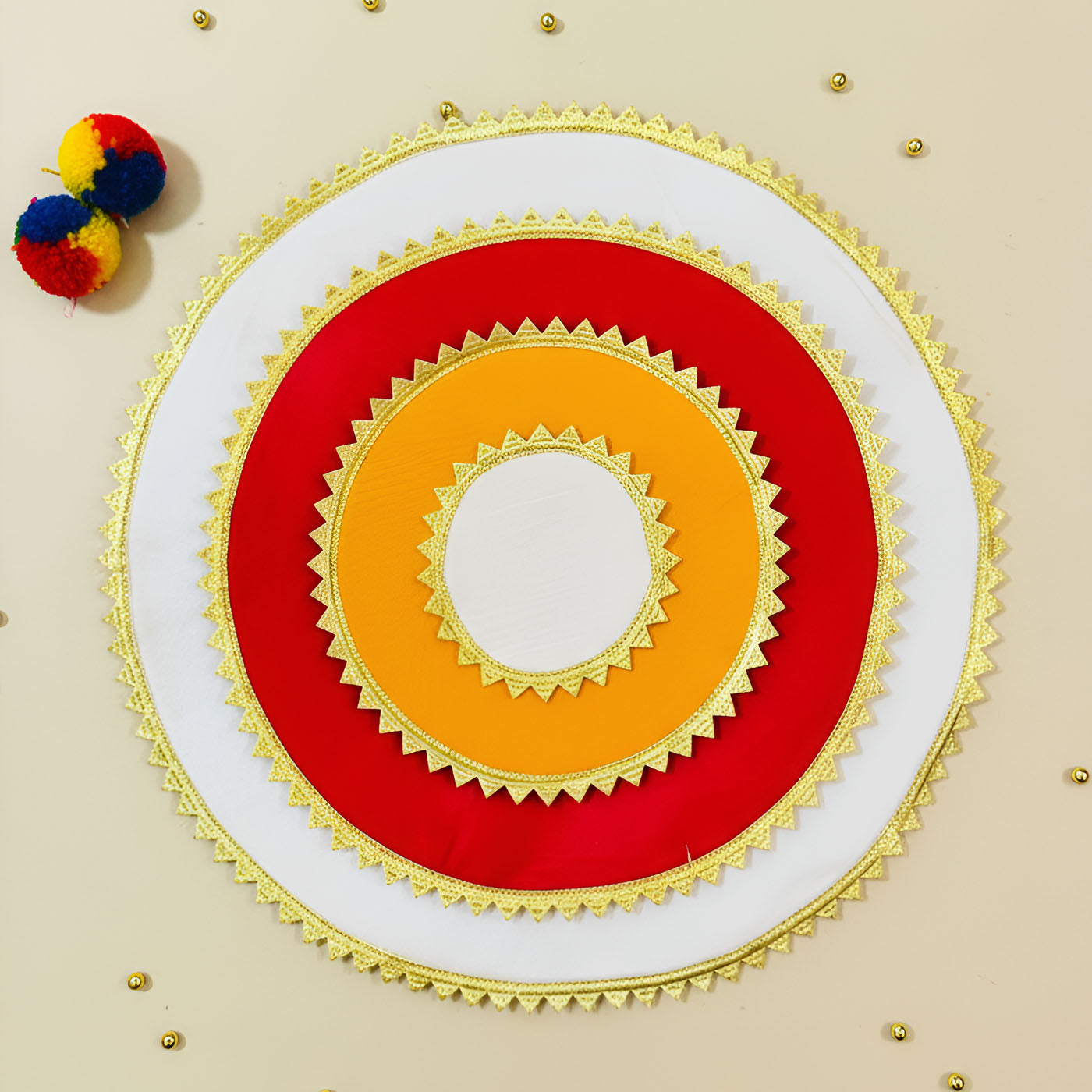 - Add vibrant festive charm to your home with this set of handmade round fabric rangolis.