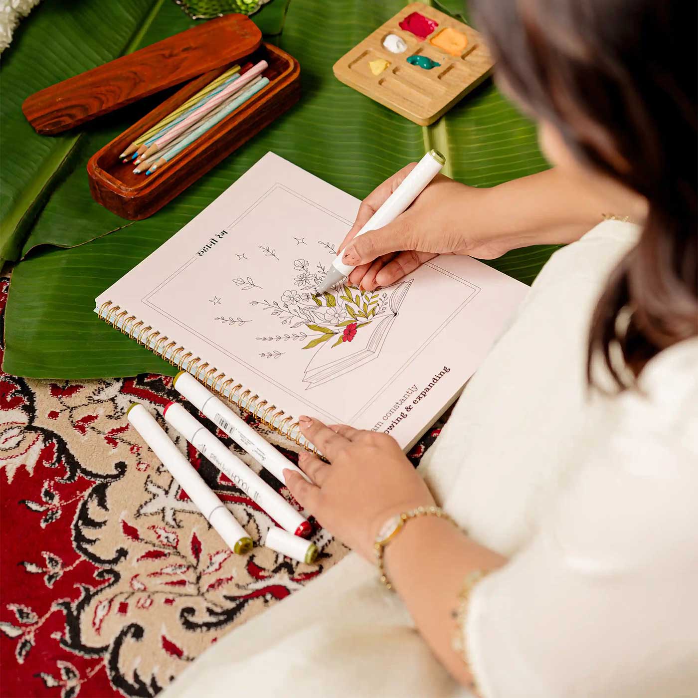 • The Coloring Scrapbook complements this by offering an enchanting collection of coloring pages, craft paper with real flower petals, and ample space for drawing and note-taking.