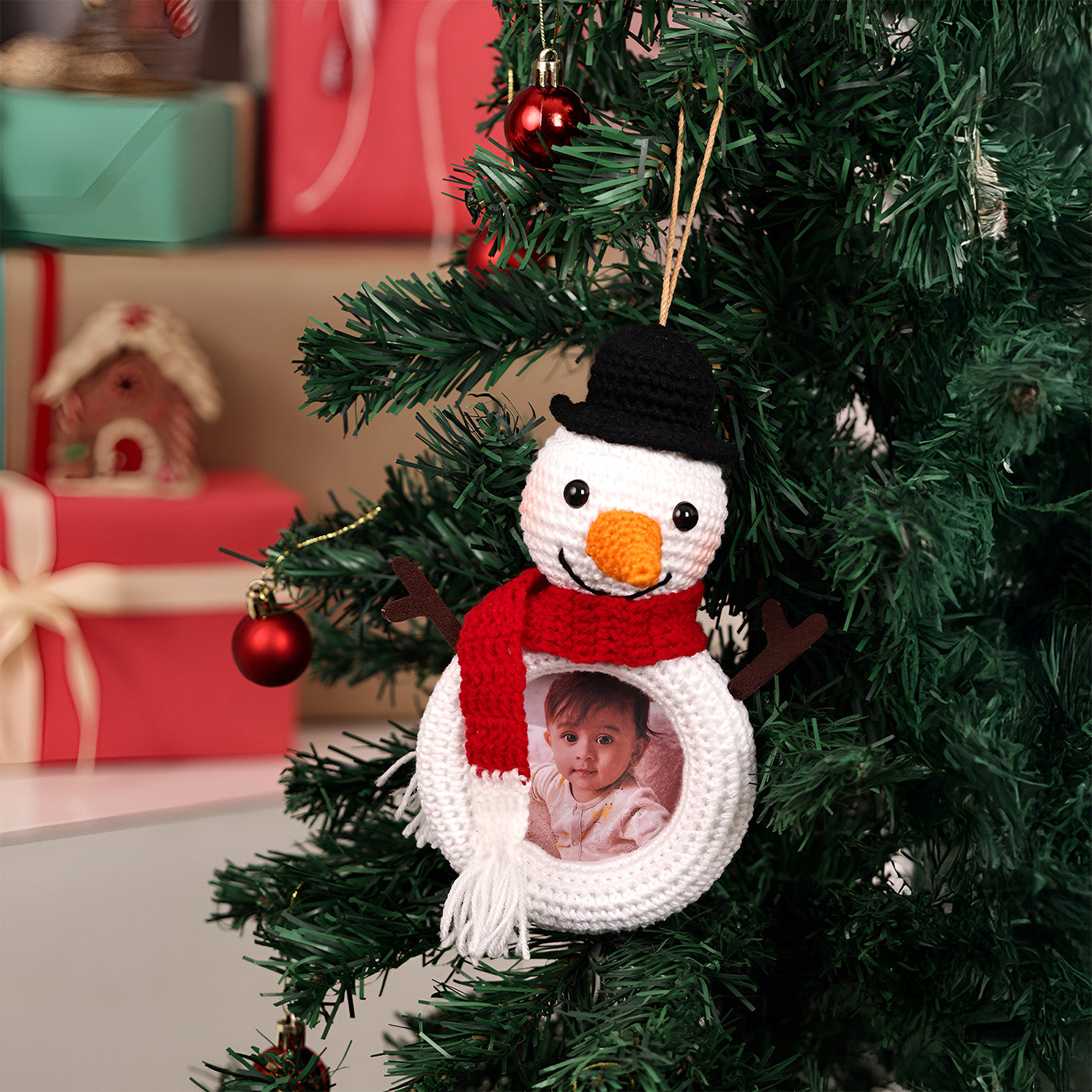 - This adorable handmade snowman ornament frames your child’s photo to add a personal touch to your Christmas tree.